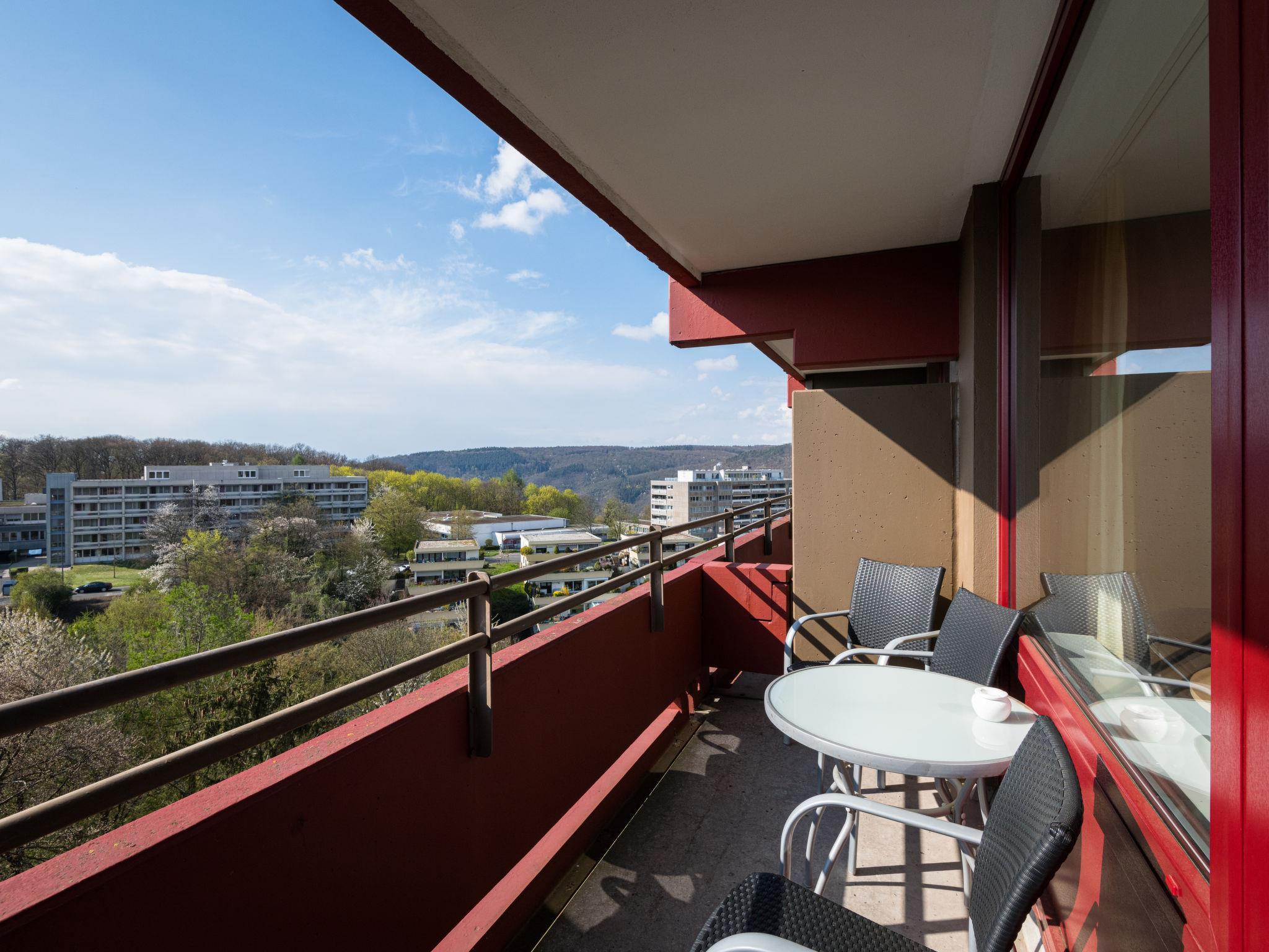 Lahnstein 12 km von Koblenz: Appartementhaus "Ferienpark Rhein-Lahn". Im Ortsteil Lahnstein auf der Höhe, 4 km vom Zentrum von Lahnstein, 12 km vom Zentrum von Koblenz, 4 km vom Fluss. Zur Mitbenutzung: Hallenbad (11 x 6 m, 120 cm tief) mit Innentreppe. Dusche/WC im Poolbereich. In der Anlage: Empfang, Wireless LAN, Tischtennis, Fahrstuhl, Zentralheizung, Waschmaschine, Wäschetrockner (zur Mitbenutzung, extra). Parkplatz beim Haus. E-Ladestation. Lebensmittelgeschäft 200 m, Supermarkt 4.5 km, Restaurant 800 m, Bäckerei 4.5 km, Fahrradverleih 4.5 km, Zentrum zu Fuss in 45 Minuten erreichbar, Bushaltestelle "Kurklinik" 200 m, Bahnstation "Koblenz (HBF)" 12 km, Park "Kurpark" 200 m, Freibad 1.5 km, Hallenbad 5 km, Thermalbad "Emser Therme" 10 km. Golfplatz (18 Loch) 16 km, Tennis 500 m, Minigolf 6 km, Wanderwege ab Haus 100 m, Radweg 4.5 km, Kinderspielplatz 100 m. Nahe gelegene Sehenswürdigkeiten: Burg Lahneck 3 km, Marksburg 7 km, Deutsches Eck Koblenz / Seilbahn 10 km, Schloss Stolzenfels 13 km. Wandergebiete: Lahn-Höhenweg 100 m, Rheinsteig (11) 100 m, Jakobswege Rhein-Lahn. Bitte beachten: Fahrzeug empfohlen. Lahn 4 km. Schiffsfahrten (KD) auf dem Rhein 4.5 km. Mosel 10 km. Kleiner Kiosk mit kleinem Tiergehege 300 m entfernt. Der Ferienpark Rhein-Lahn liegt 200 m über der Stadt Lahnstein, mitten im 530 km2 grossen Naturpark Nassau und besteht aus zwei miteinander verbundenen Appartementhäusern sowie eigenem Interhome-Service-Büro. Das Rauchen auf den Balkonen der Wohnungen ist erlaubt. E-Ladestation ist auf dem Parkplatz zu finden, 11 kw. Nutzung und Abrechnung über Interhome Service Büro.