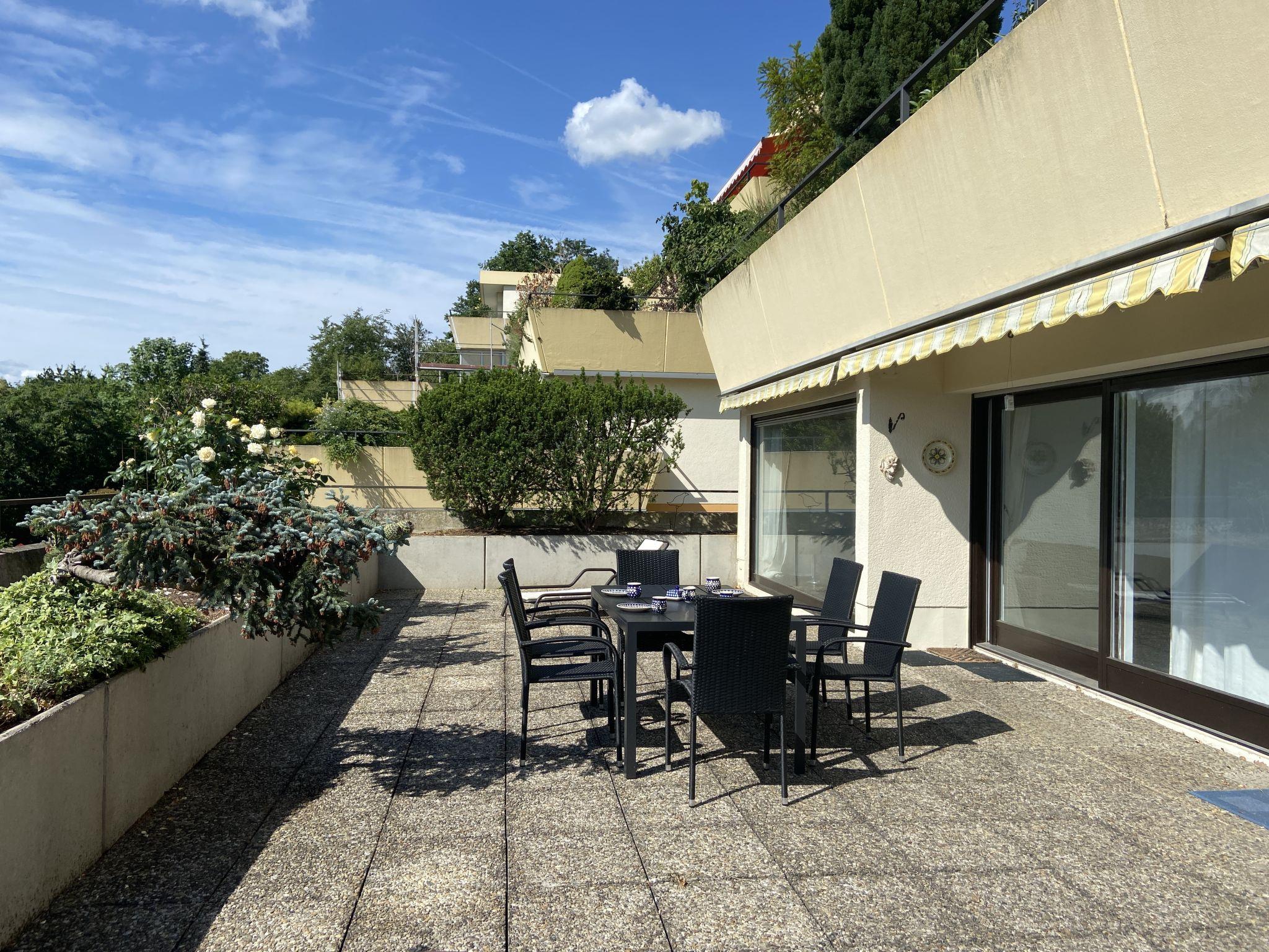 "Terrassenwohnung am Kurpark", 5-Zimmer-Wohnung 134 m2. Geräumig und hell, komfortabel und schön eingerichtet: offenes grosses Wohn-/Esszimmer mit Panoramafenster mit TV (Flachbildschirm), Stereoanlage. Ausgang zur Terrasse. 1 Zimmer mit 1 Doppeldiwanbett (140 cm, Länge 200 cm), 1 Doppelbett (2 x 100 cm, Länge 200 cm). Ausgang zur Terrasse. 1 Zimmer mit 1 Doppelbett (2 x 100 cm, Länge 200 cm). Kleines Büro mit 1 Wandschrankbett (90 cm, Länge 180 cm). Wohnküche (Backofen, Geschirrspüler, 4 Induktionskochplatten, Toaster, Wasserkocher, Mikrowelle, Tiefkühler, elektrische Kaffeemaschine). Dusche/WC, sep. WC. Grosse Terrasse 20 m2. Terrassenmöbel, Abstellkammer. Schöne Sicht auf die Landschaft. Zur Verfügung: Waschmaschine, Wäschetrockner, Bügeleisen. Internet (Wireless LAN, gratis). Bitte beachten: Nichtraucher-Unterkunft. Eigener Eingang, Rauchmelder. Buchungen sind nur zu touristischen Zwecken erlaubt.
