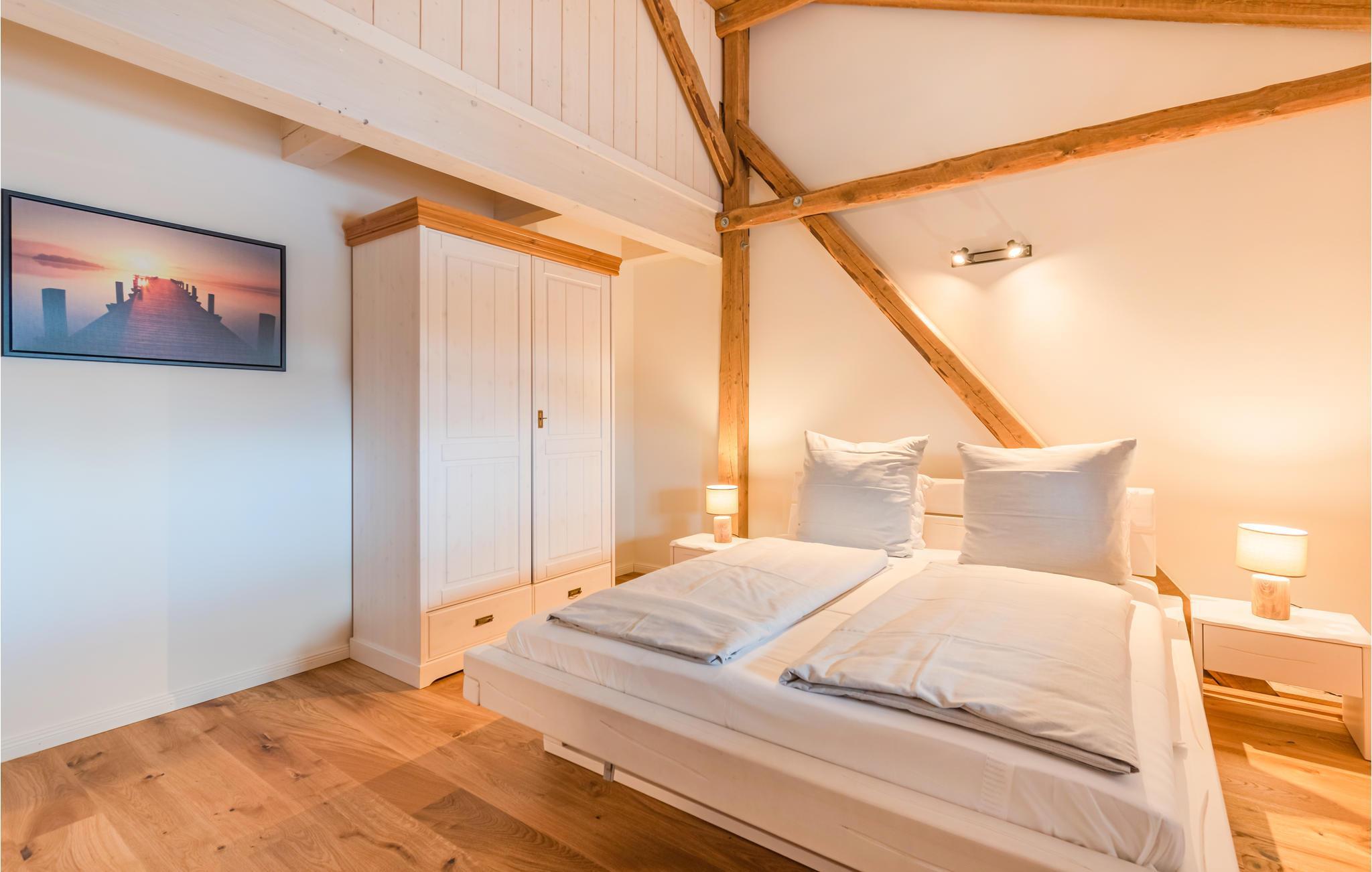 Dieses außergewöhnliche Apartmenthaus wurde 2020 aus einem ehemaligen landwirtschaftlichen Gebäude erschaffen. Dabei wurde auf höchste Qualität und Wohnkomfort geachtet ohne den ursprünglichen Charakter des Gebäudes aus den Augen zu verlieren. Es entstand ein Feriendomizil an der Nordsee was seines Gleichen sucht. Alle Räume sind sehr groß und sorgen mit hohen Decken und den offenen, rustikalen Balken für ein ganz besonderes Wohngefühl im Landhausstil. Im großen Wohn- Essbereich haben Sie ausgesprochen viel Platz für einen Urlaub mit bis zu 4 Personen. Auf dem Balkon können Sie wunderbar in der Sonne sitzen und sich die Nordseeluft um die Nase wehen lassen. Im großen Bad mit offen gestalteter Dusche fehlt es Ihnen an nichts. Im ganzen Haus gibt es Fußbodenheizung. Genießen Sie mit einem Buch oder einem Glas Wein den Ausblick auf die weite Landschaft Nordfrieslands und lassen Sie den Alltag zuhause. Auf dem Gasgrill können Sie leckere Grillmahlzeiten zubereiten. Bitte bringen Sie Ihr eigenes Gas mit.