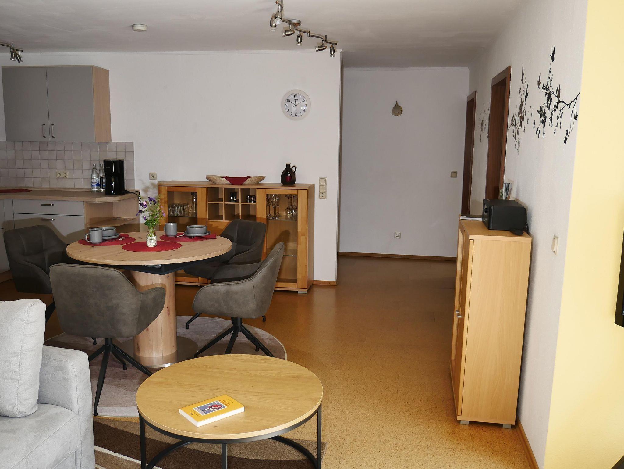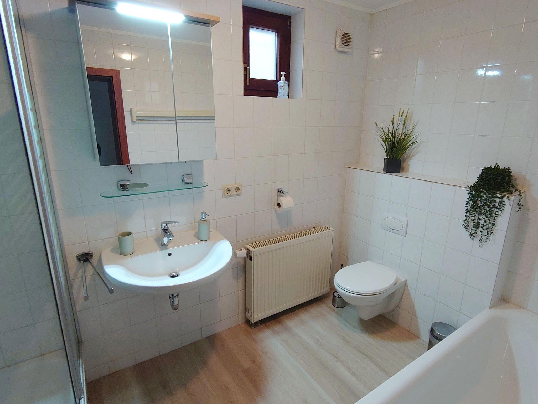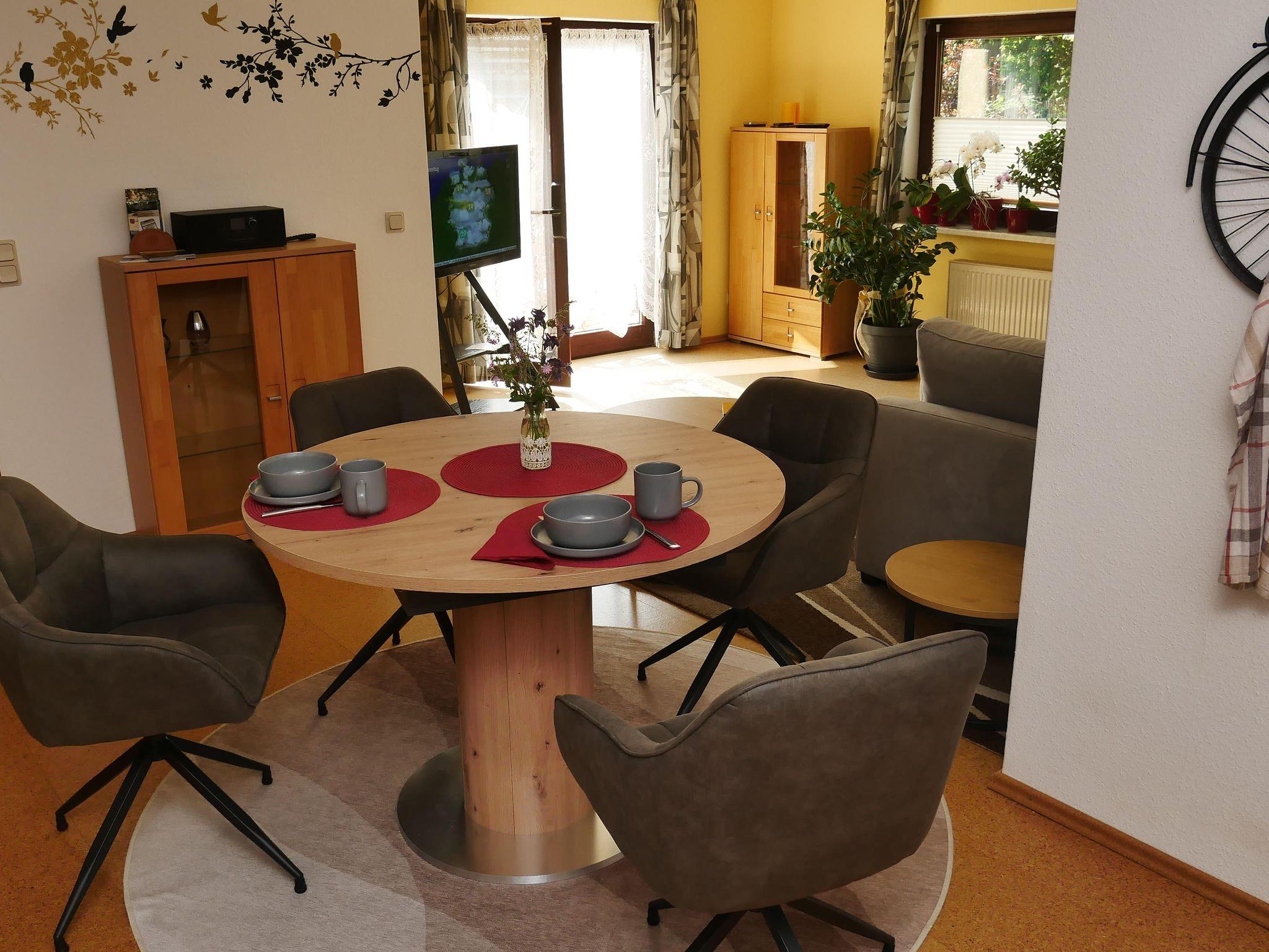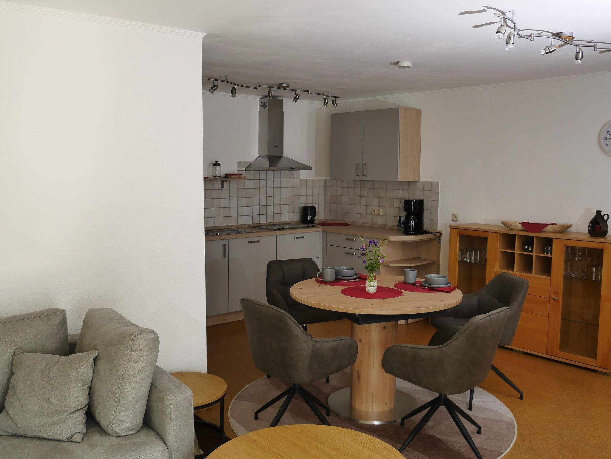 Ferienwohnung mit Wohnküche inklusive Essbereich und gemütlicher Sofa-Ecke, Sat-TV, WLAN, 2 Doppelzimmer, Dusche/WC, Terrasse, Fahrradraum mit Werkzeug und Trockenmöglichkeit