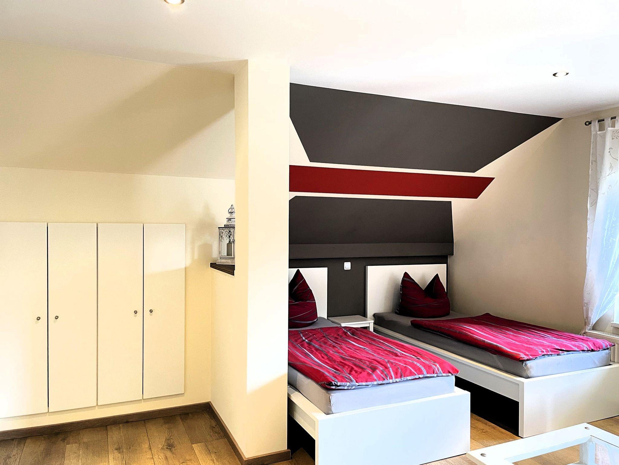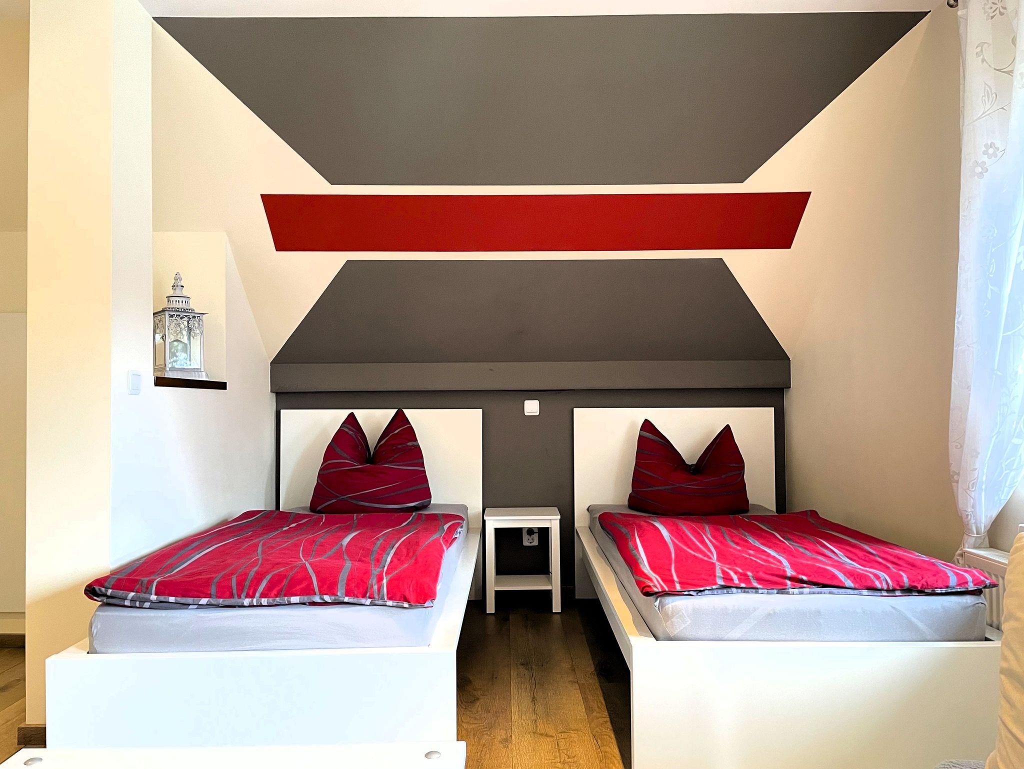 Ankommen, wohlfühlen, entspannen: Unsere Unterkunft bietet auf zwei Etagen drei liebevoll eingerichtete Gästezimmer, jedes mit eigenem Bad für Ihre Privatsphäre. Im Erdgeschoss befindet sich eine Gemeinschaftsküche, die Raum für Begegnungen bietet und sich ideal zum Kochen oder für einen Plausch mit anderen Gästen eignet. Zwei Kühlschränke in der Unterkunft sorgen dafür, dass alle ausreichend Platz für ihre Vorräte haben. Zusätzlich steht Ihnen hier auch eine Waschmaschine zur Verfügung praktisch für längere Aufenthalte.