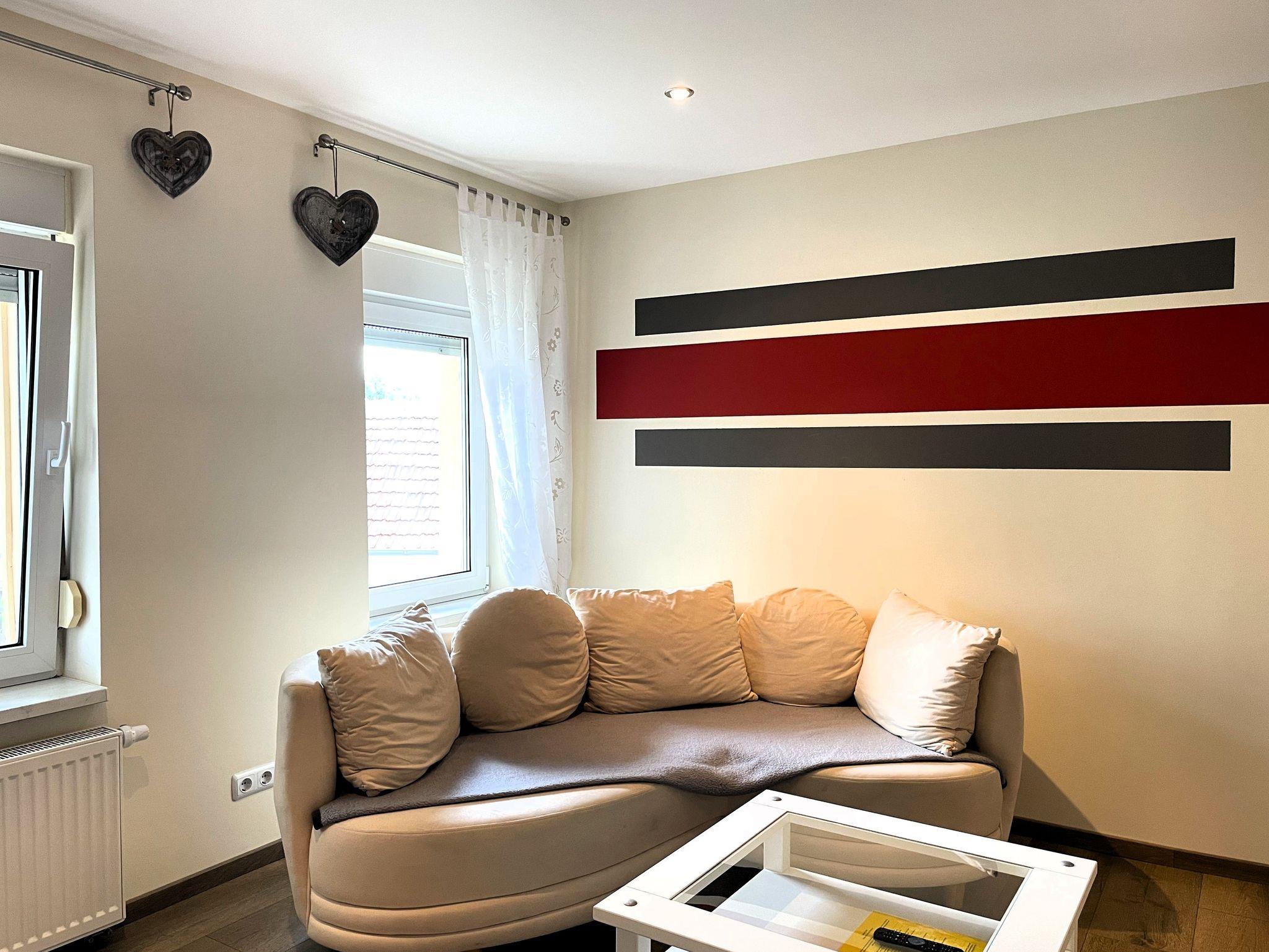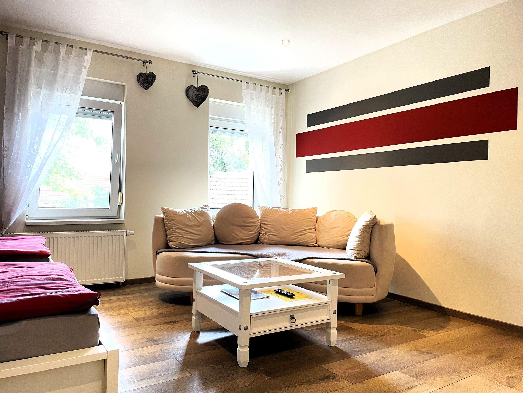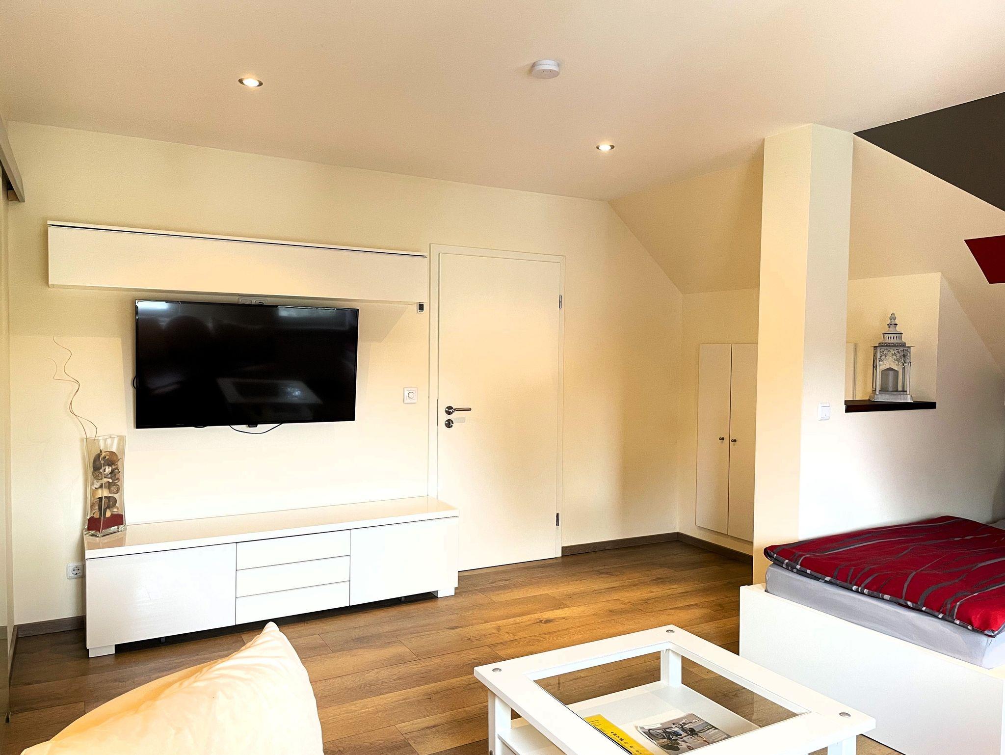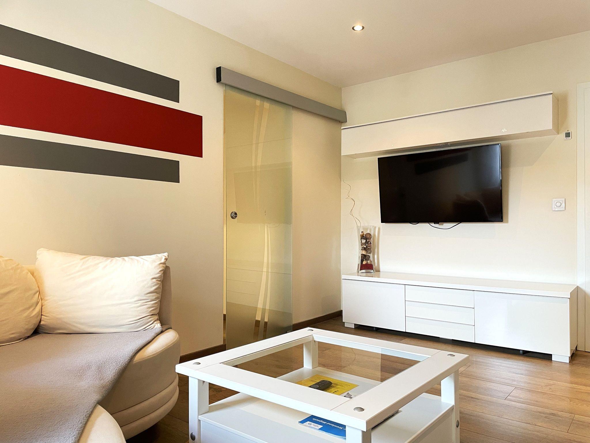Zwei einzeln stehende Betten bieten erholsamen Schlaf, und auf Wunsch steht ein Babybett für Kinder bis 3 Jahre bereit. Ein bequemes Sofa lädt zum Entspannen ein, während der Smart-TV für Unterhaltung an gemütlichen Abenden sorgt.