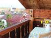 - zum geschützten 6 m langen möblierten Ostbalkon mit herrlicher Aussicht, Küchenzeile mit Dachfenster mit Herd, Backofen, Kaffeemaschine und Essplatz mit runden Tisch, Badezimmer mit Dusche u. WC und Dachfenster