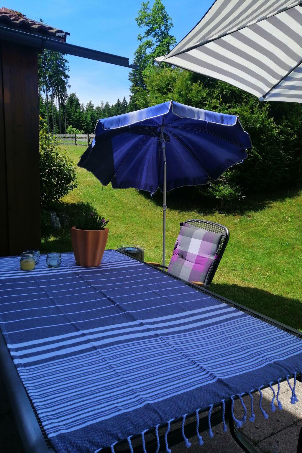 Der große Balkon und die Sonnenterrassen vor und hinter dem Haus bieten ungestörte Erholung. Von der hinteren Terrasse hat man den direkten Blick in die Natur.