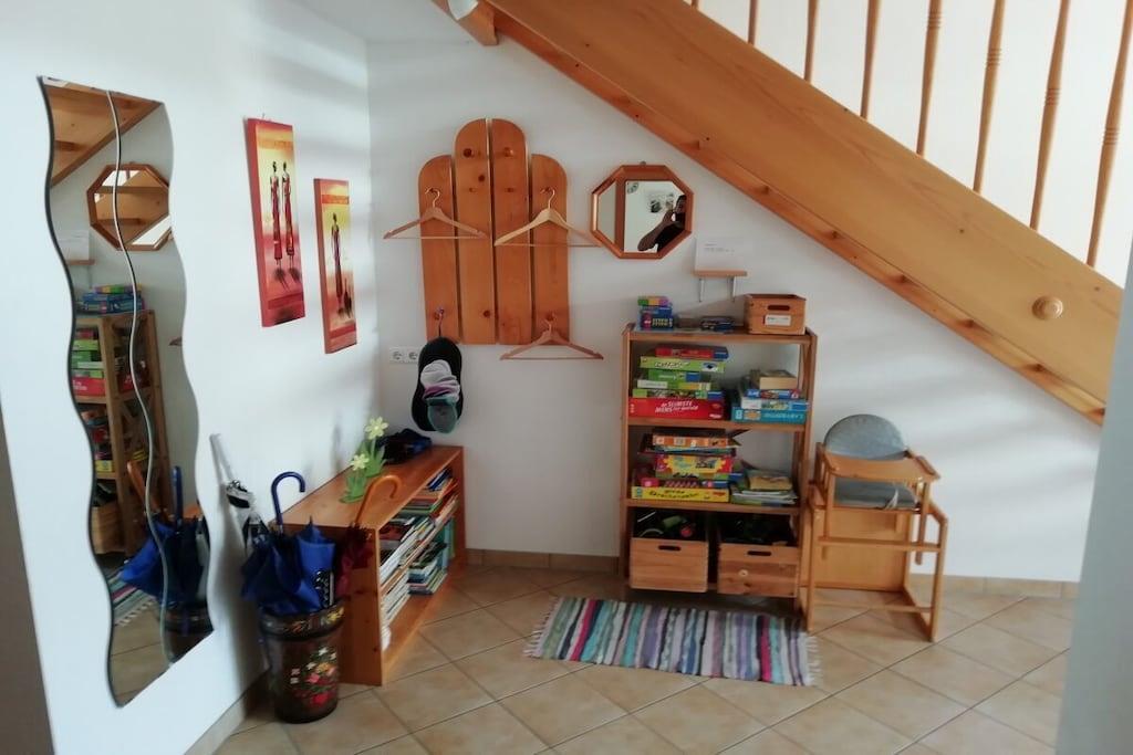 Es verfügt über 3 Doppelschlafzimmer, Dusche, 2 WCs, großzügiges Wohn-/Esszimmer mit zusätzlichen Kachelofen, SAT-TV, W-Lan, Küche mit Geschirrspüler, Gefrierschrank, Terrasse mit Garten und Grillmöglichkeit.