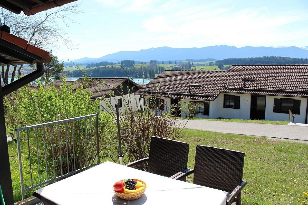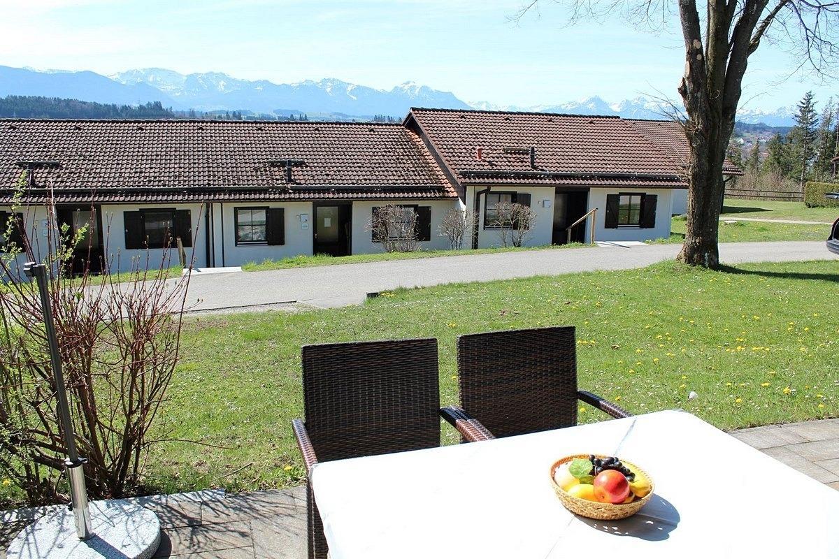 Unser Ferienhaus in bevorzugter Höhenlage hat ca. 64 qm Wohnfläche sowie eine teil überdachte und seitlich geschützte Süd-Terrasse mit Liegewiese. Der Blick geht auf die Ammergauer Alpen und den Lechsee. Sie können unser Haus am An- und Abreisetag zum Be- und Entladen bequem mit dem Auto erreichen. Das Haus ist stufenlos zu betreten. Zum Restaurant Hochbergle mit Brötchen-Service sind es nur ca. 100m.