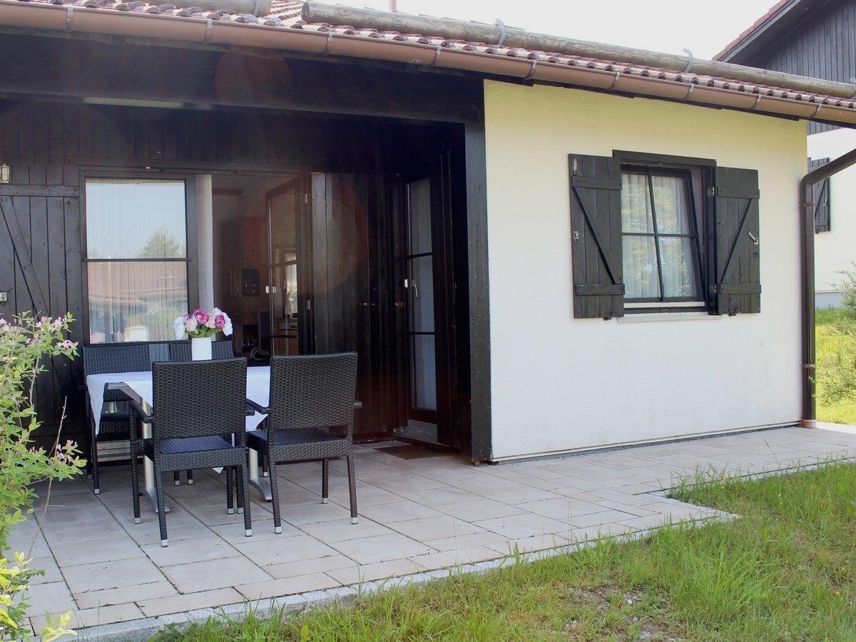 Das freundliche, helle Wohnzimmer lädt ein, sich wohl zu fühlen. Die gemütliche Sitzgruppe mit ausziehbarer Couch bietet Platz für alle Gäste.Ein Flachbild-Fernseher und Radio (Musikanlage) gehören ebenfalls zur Ausstattung dieses Hauses. Vom Wohnzimmer aus gelangen Sie direkt auf Ihre Terrasse. Auf der Terrasse ist das Grillen (mit eigenem Grill) erlaubt.Der direkt angrenzende Essbereich bietet Platz für Ihre gemeinsamen Mahlzeiten und gemütliche Abende.