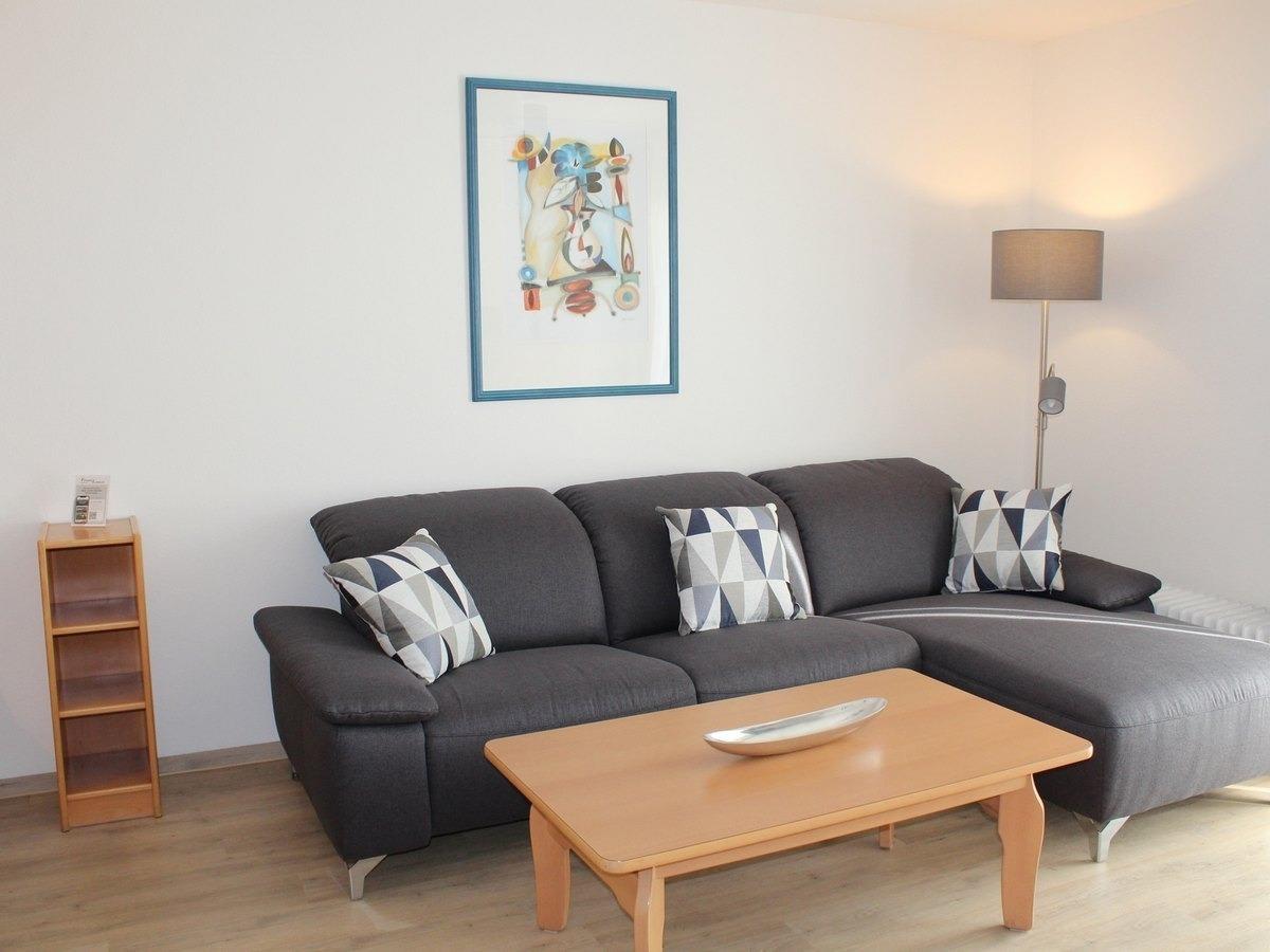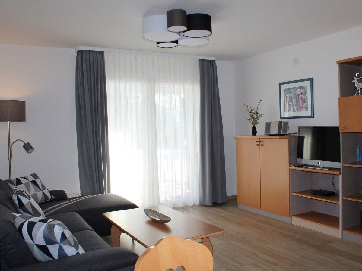 Voll möbliertes Wohnzimmer mit gemütlicher Sitzgarnitur. Das Sofa kann für einen 5. Gast ausgeklappt werden. Flachbild-Fernseher und Radio gehören ebenfalls zur Ausstattung dieses Hauses. Vom Wohnzimmer aus gelangen Sie direkt auf Ihre Terrasse. Grillen mit Ihrem eigenen Grill ist gestattet. Der direkt angrenzende Essbereich bietet Platz für Ihre gemeinsamen Mahlzeiten und gemütliche Abende.