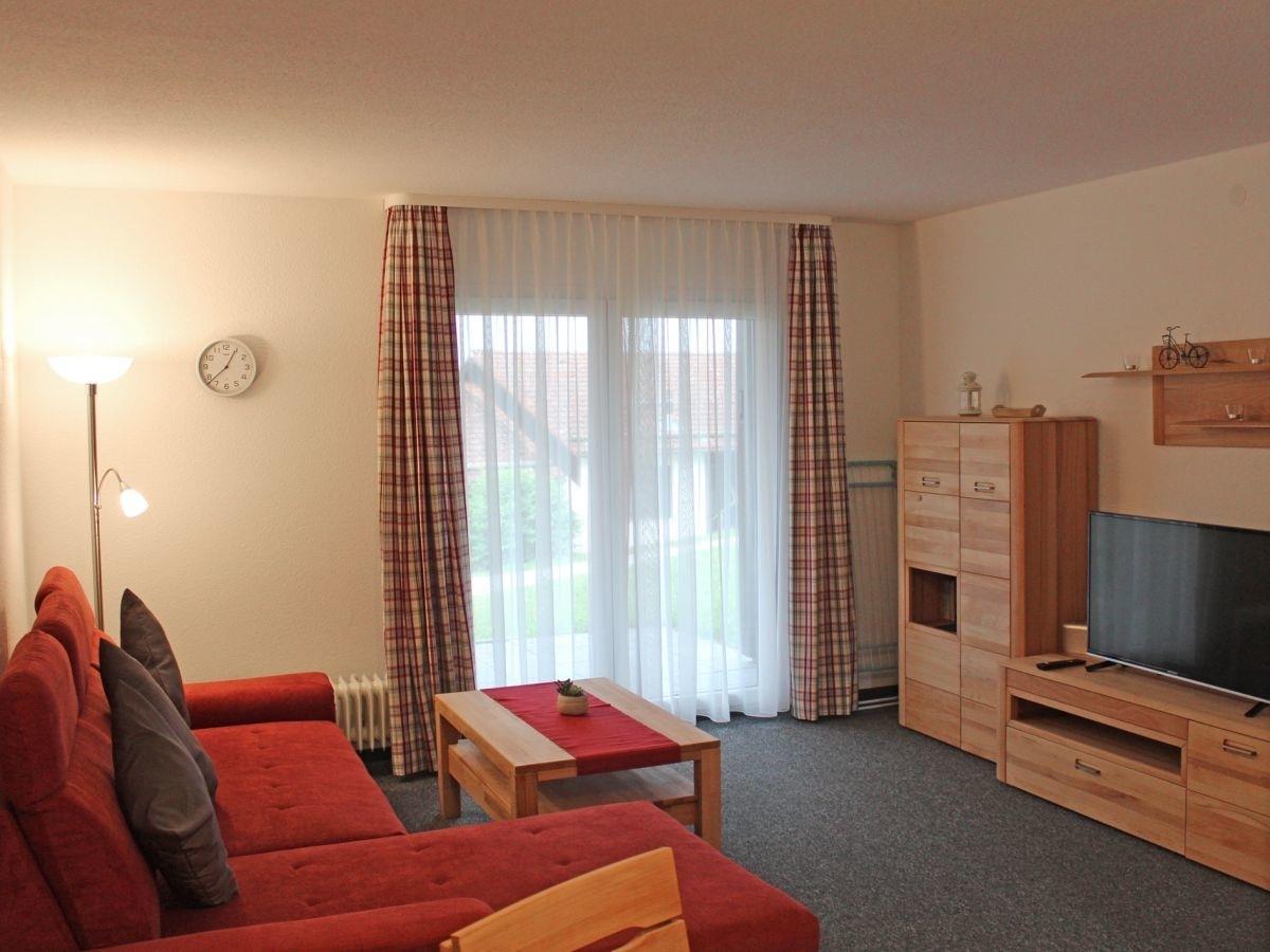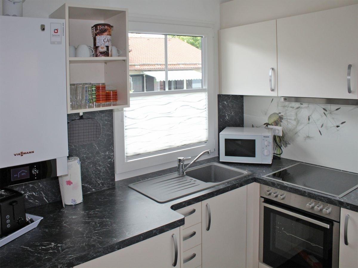 Das hell und freundlich eingerichtete Wohnzimmer lädt ein, sich wohl zu fühlen. Die schöne Sitzgruppe bietet Platz für alle Gäste und verfügt über eine schöne, moderne Couch. Flachbild-Fernseher und Radio gehören ebenfalls zur Ausstattung dieses Hauses. Vom Wohnzimmer aus gelangen Sie direkt auf Ihre Terrasse. Grillen mit Ihrem eigenen Grill ist gestattet. Der direkt angrenzende Essbereich bietet Platz für Ihre gemeinsamen Mahlzeiten und gemütliche Abende.