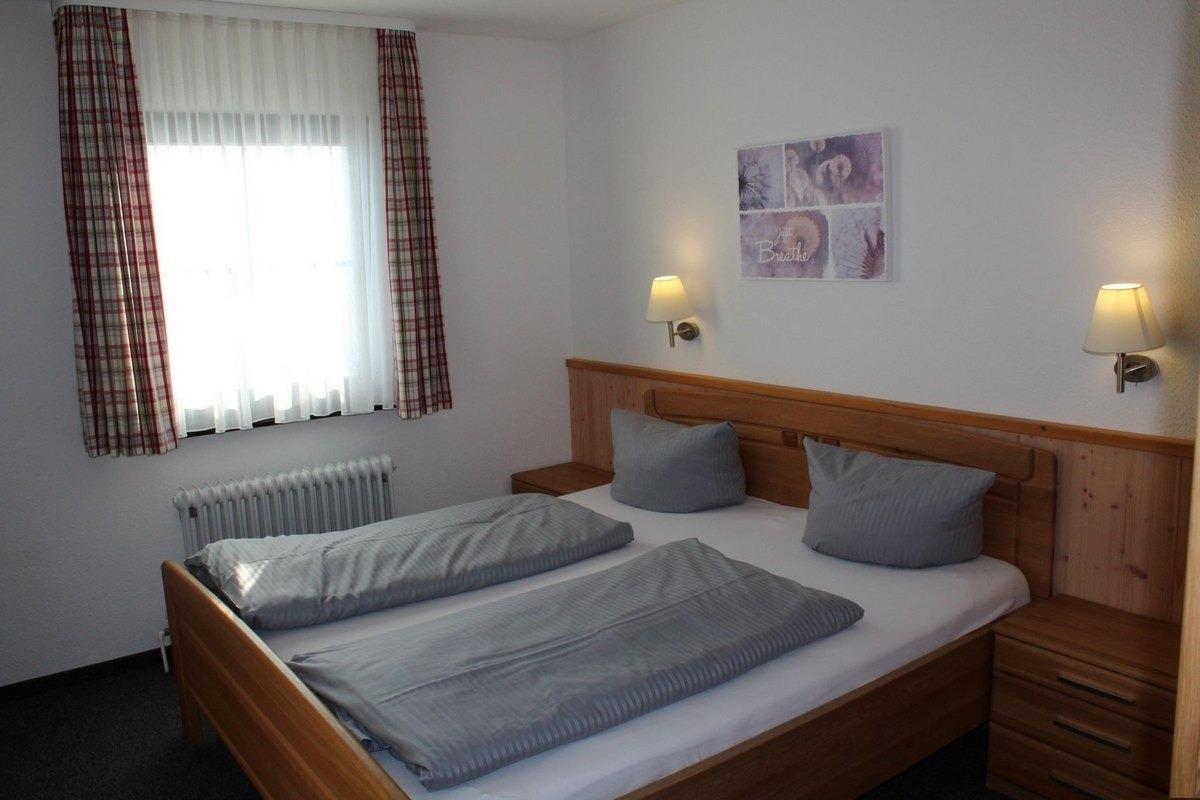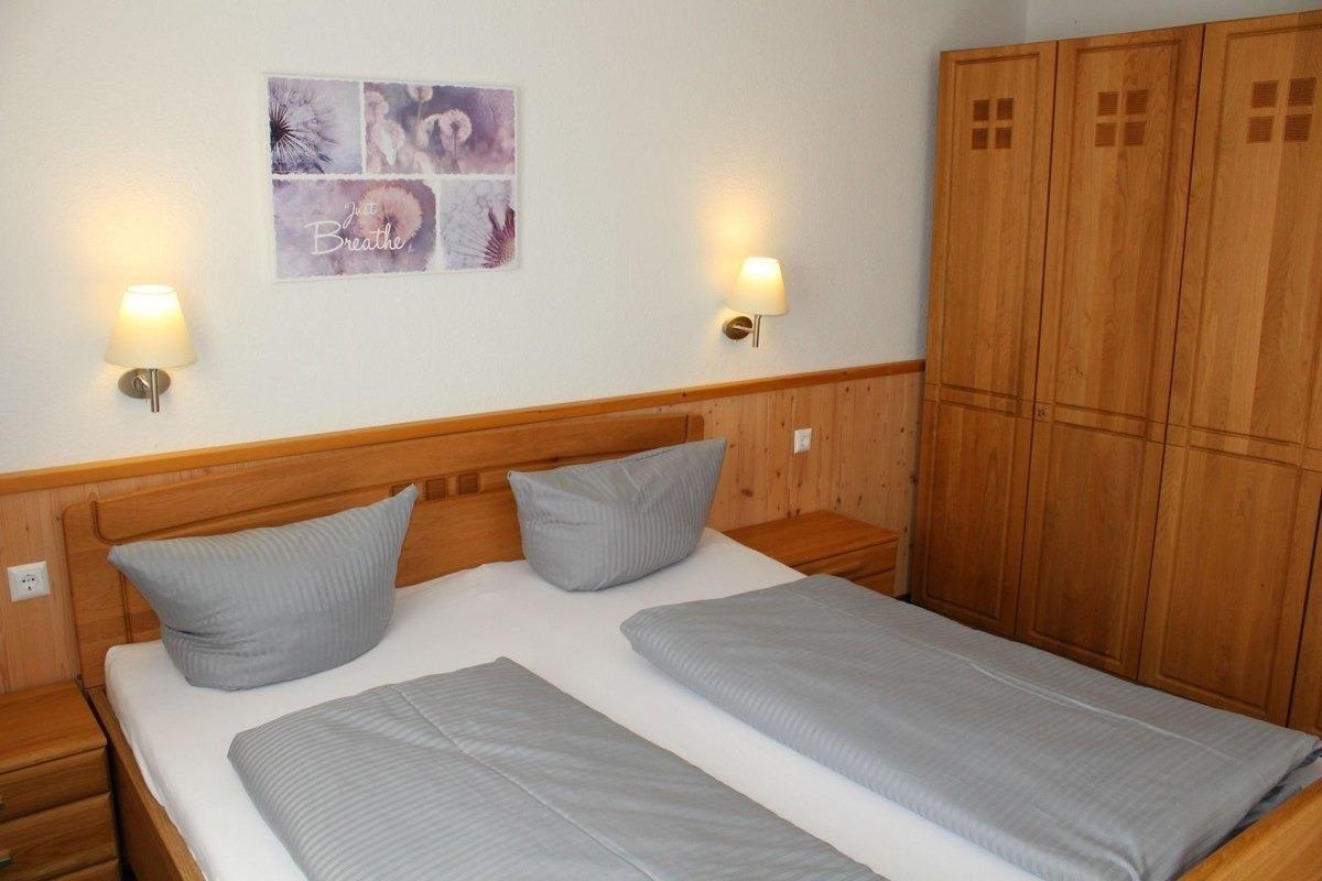 mit Doppelbett und geräumigem Kleiderschrank. Auch von diesem Zimmer aus haben Sie Zutritt zur Terrasse.