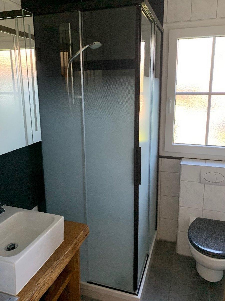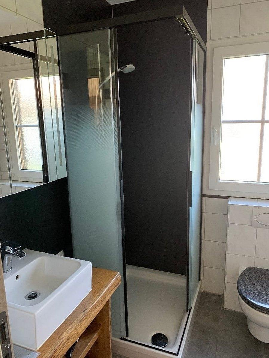 Dusche/WC mit Fenster und Handtuchheizkörper