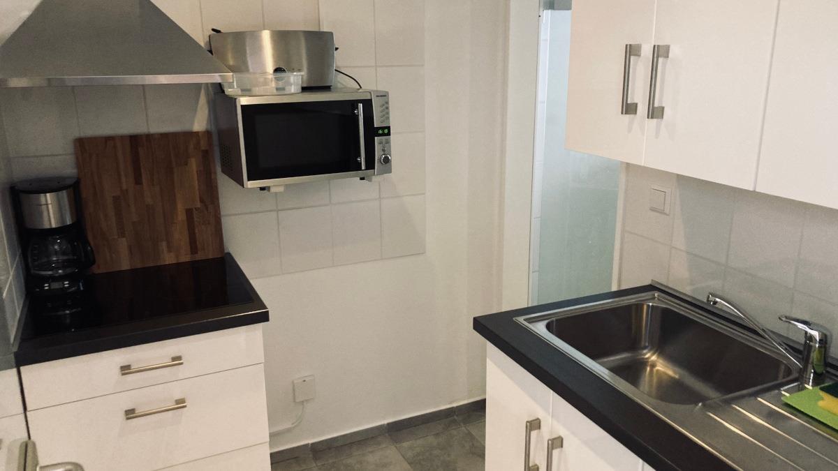 Die vollausgestatte Küche bietet nahezu alles, was man benötigt. Vom morgendlichen frischen Kaffe aus der Kaffemaschine über Wasserkocher, Mikrowelle, Ofen und Herd, finden Sie hier alles, was Geschäftsreisende für einen erfolgreichen Aufenthalt benötigen.