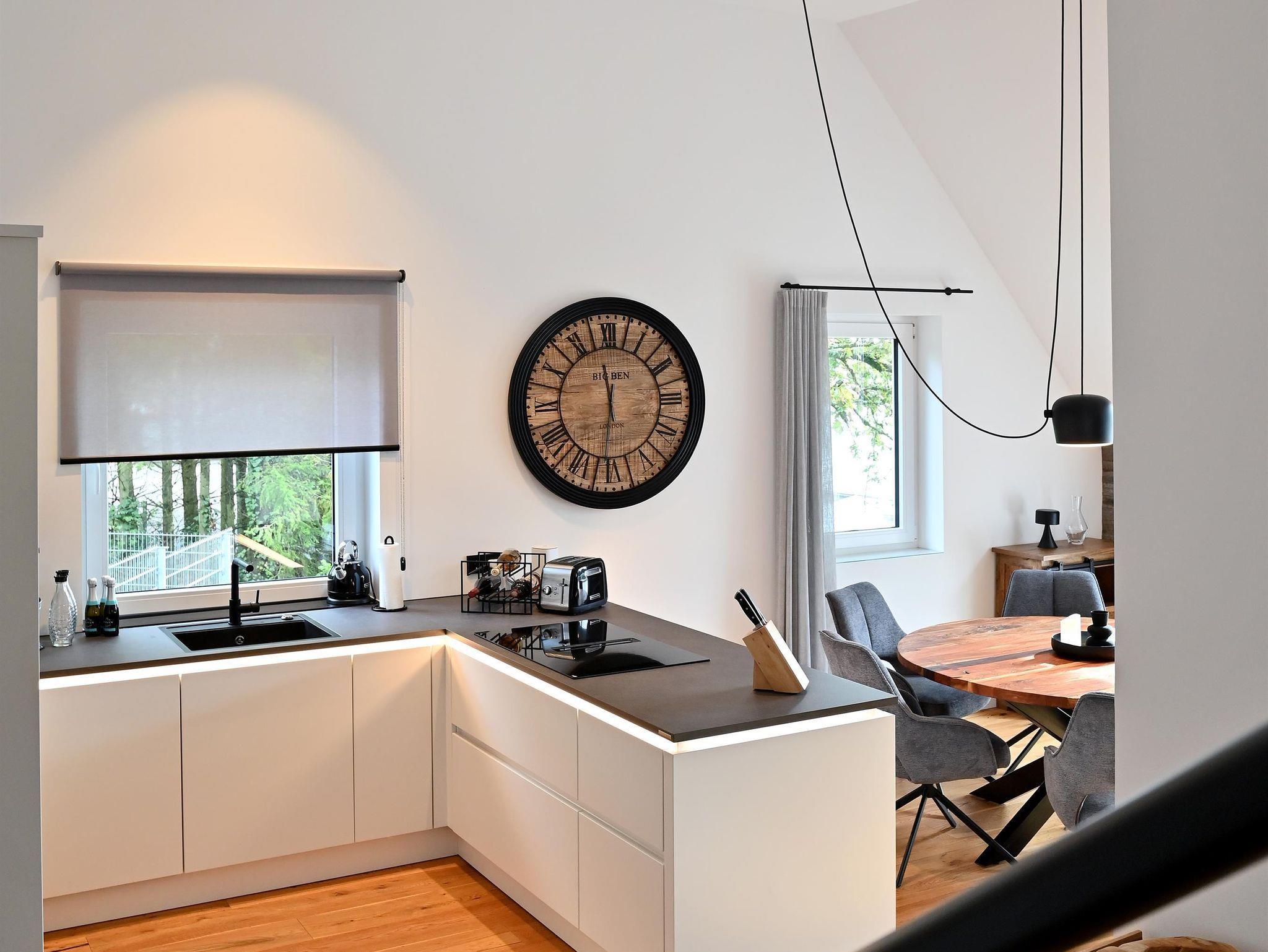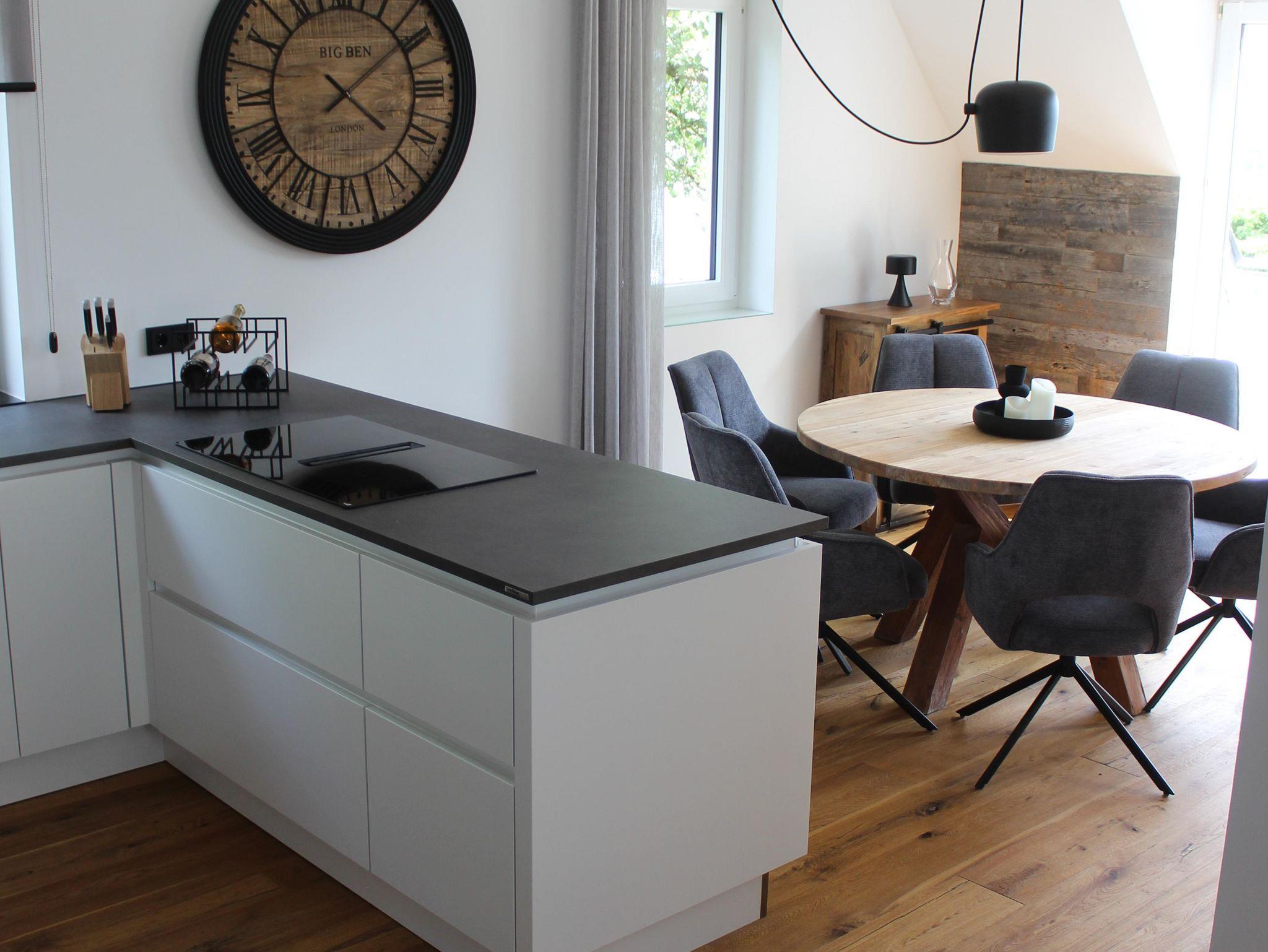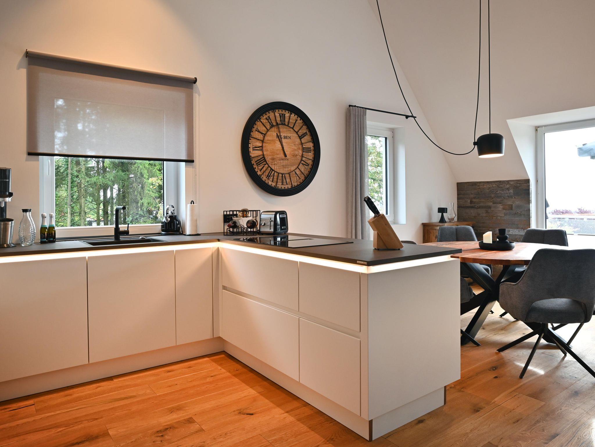 NOLTE Küche im U mit Siemens Geräten: Kühlschrank, Gefrierschubladen, Spülmaschine und Induction-Kochfeld.
