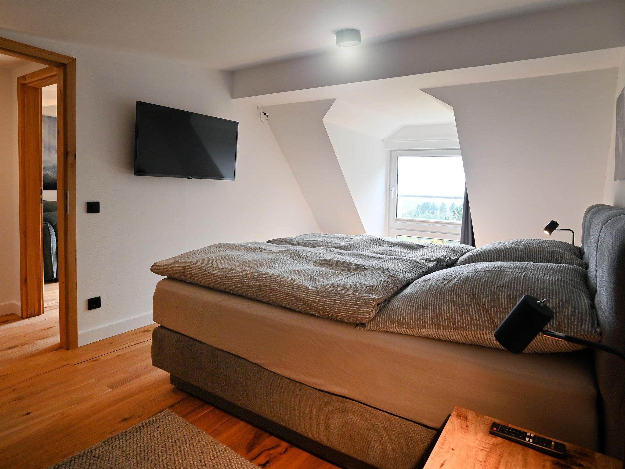 Die hochwertig eingerichtete Ferienwohnung mit Panoramablick auf Eifel, Mosel und Hunsrück bietet höchsten Komfort. Auch vom Balkon aus hat man einen herrlichen Blick. Mit drei Schlafzimmern und zwei modernen Bädern bietet die 110 m² große Ferienwohnung über zwei Etagen alles, was Sie für einen erholsamen Urlaub benötigen. W-LAN, TV und eine Wallbox sind selbstverständlich vorhanden.