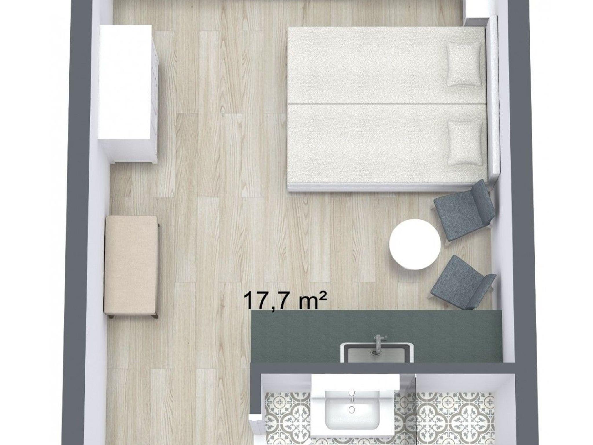 Mit einer Größe von 42m² bietet sie ausreichend Platz für Ihren entspannten Aufenthalt. Das Schlafzimmer verfügt über zwei gemütliche Einzelbetten und ein zusätzliches Gästebett, sodass bis zu 3 Personen bequem übernachten können.