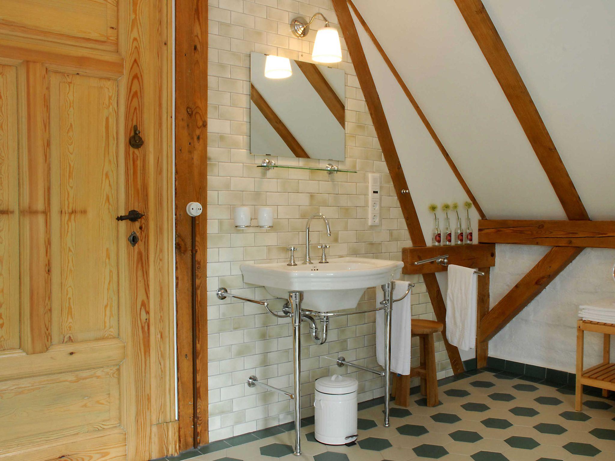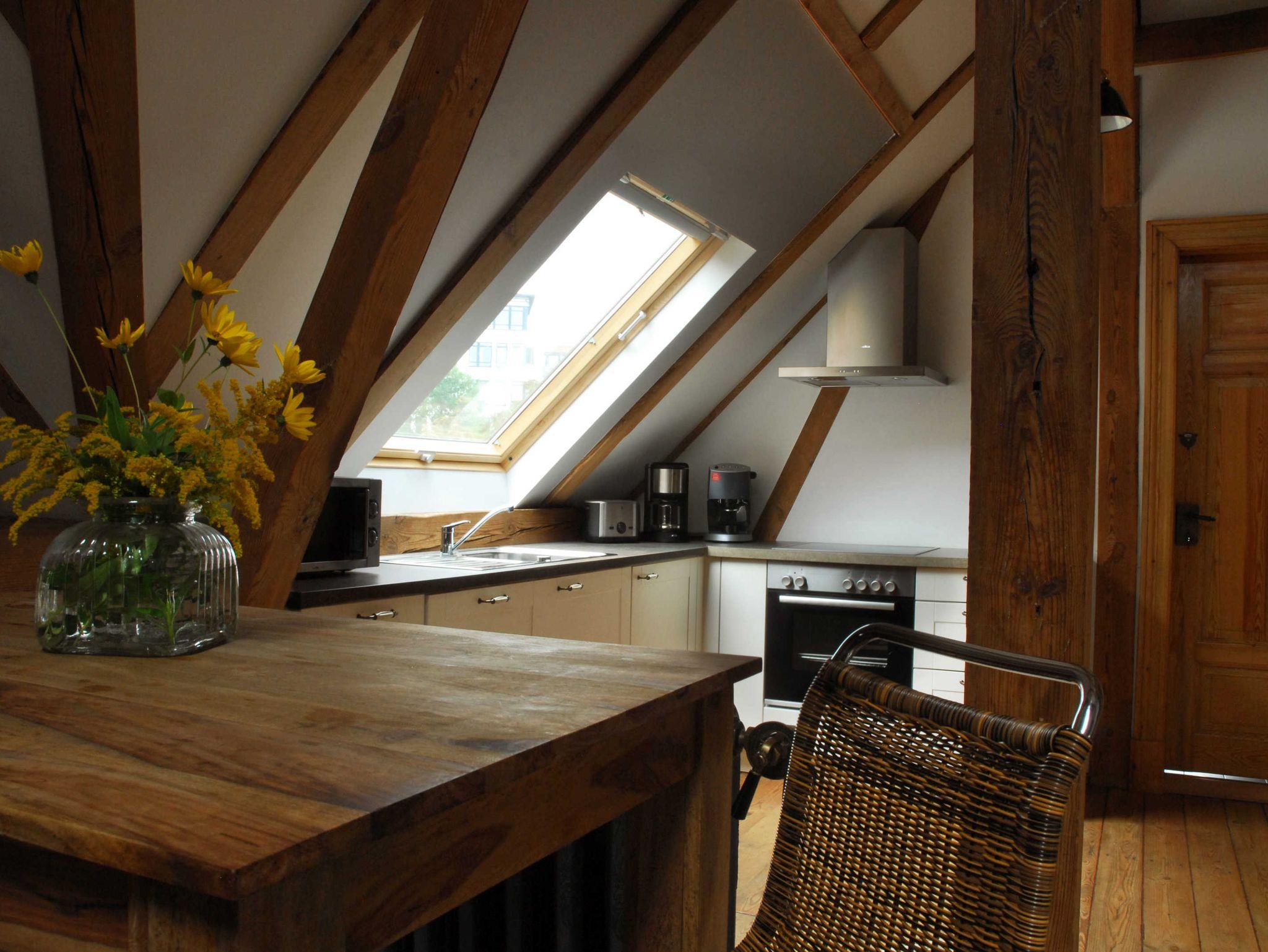 Auf 53m² haben Sie den Luxus einer komplett ausgestatteten Dachgeschosswohnung. Das Appartement ist vollklimatisiert und im Wohn/Schlafbereich nächtigen Sie in einem großzügigen Doppelbett. Entspannen Sie auf der Couch vorm HD-TV oder surfen Sie im Internet, welches drahtlos zur Verfügung steht. Das Bad, der Gründerzeit nachempfunden, besticht mit edler Keramik und Armaturen. Eine moderne Küche mit Geschirrspüler und hochwertigen Küchenutensilien macht das Kochen zum Vergnügen.