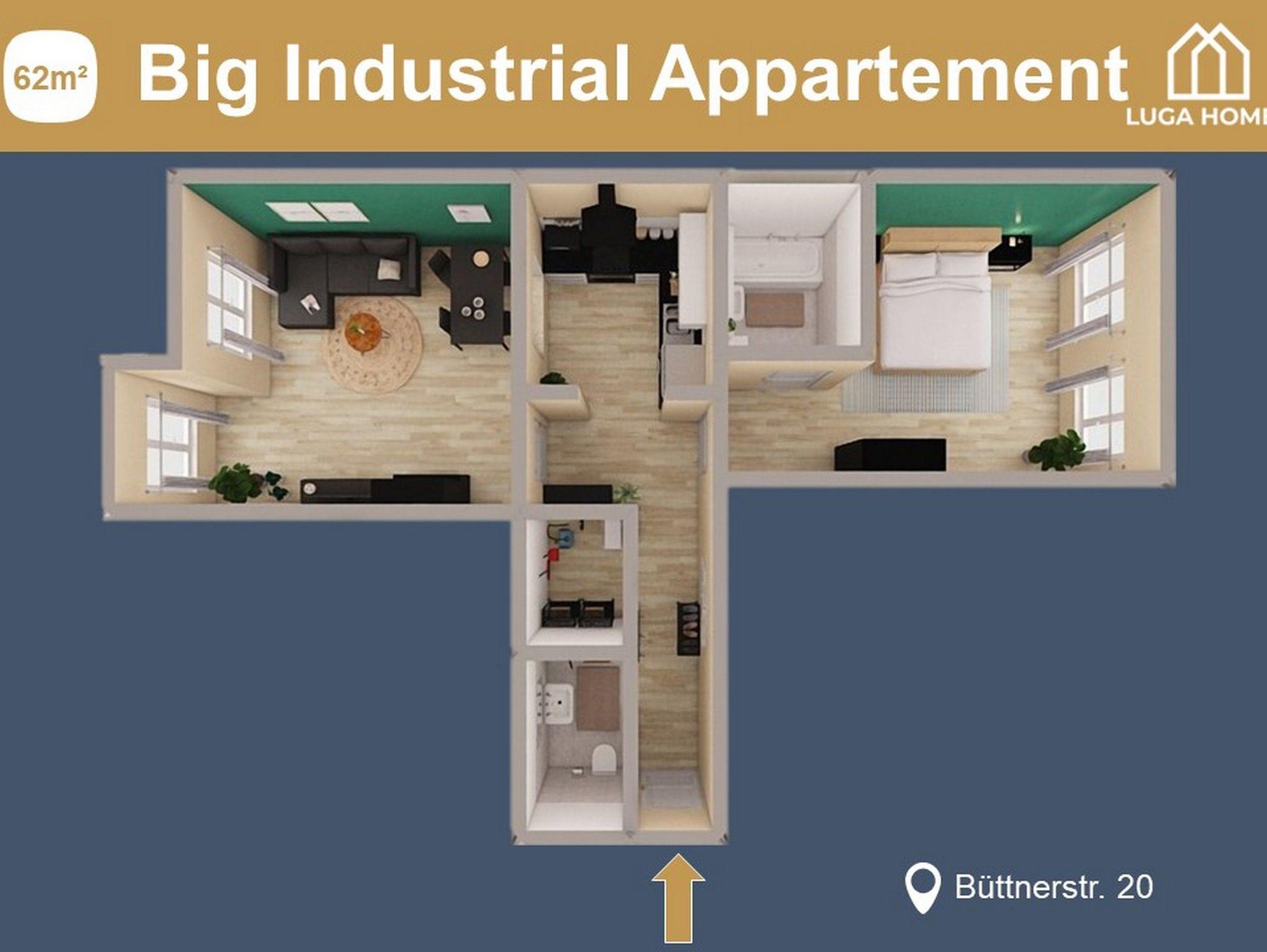 Luga Homes - Gewandhaus, *Big Industrial* 2-Zimmer-Appartement mit Küche