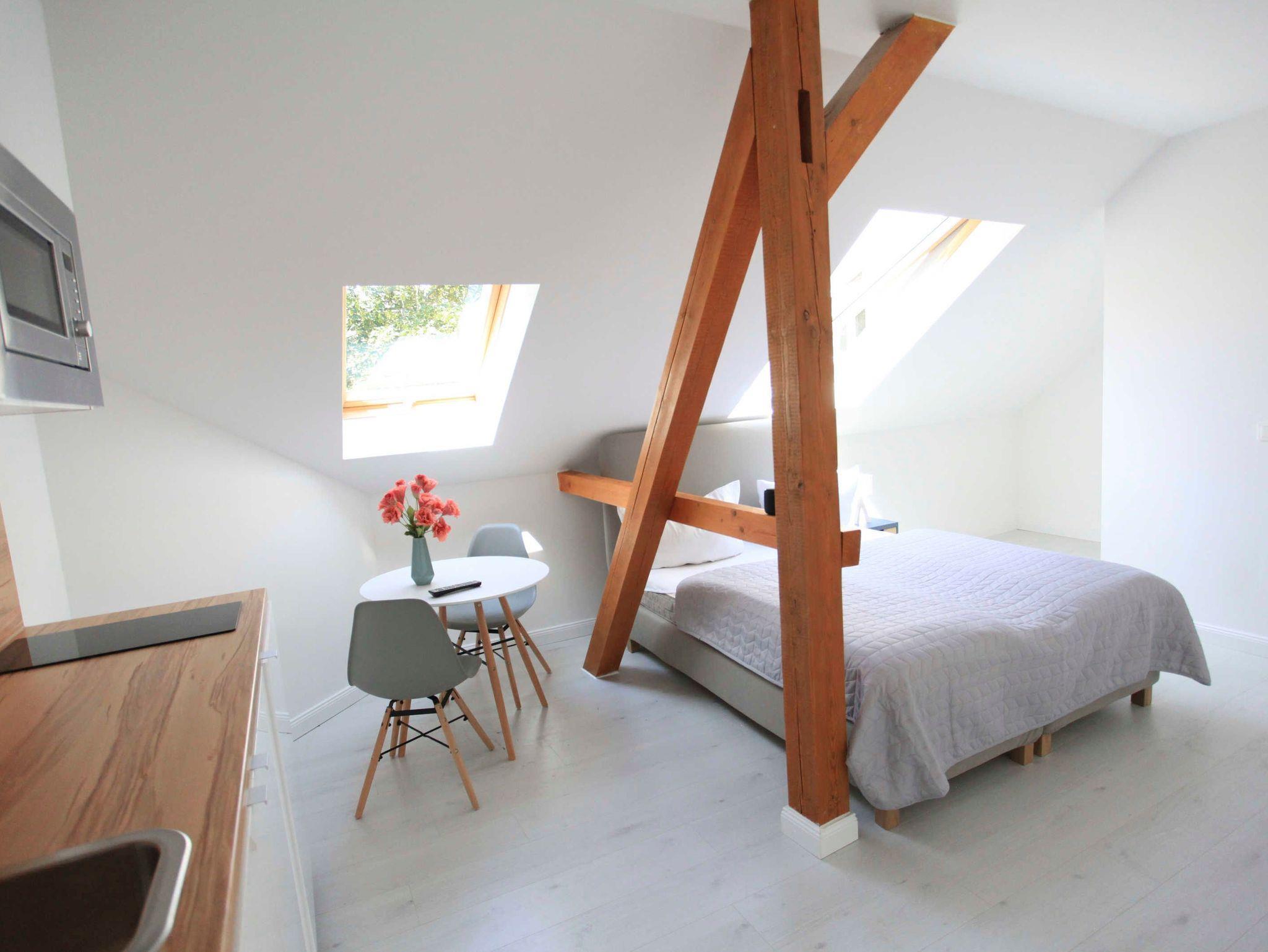 Diese einfache aber sehr gemütliche Dachgeschoss-Wohnung ist insgesamt 25m² gross. Sie bietet Platz für bis zu 2 Personen.