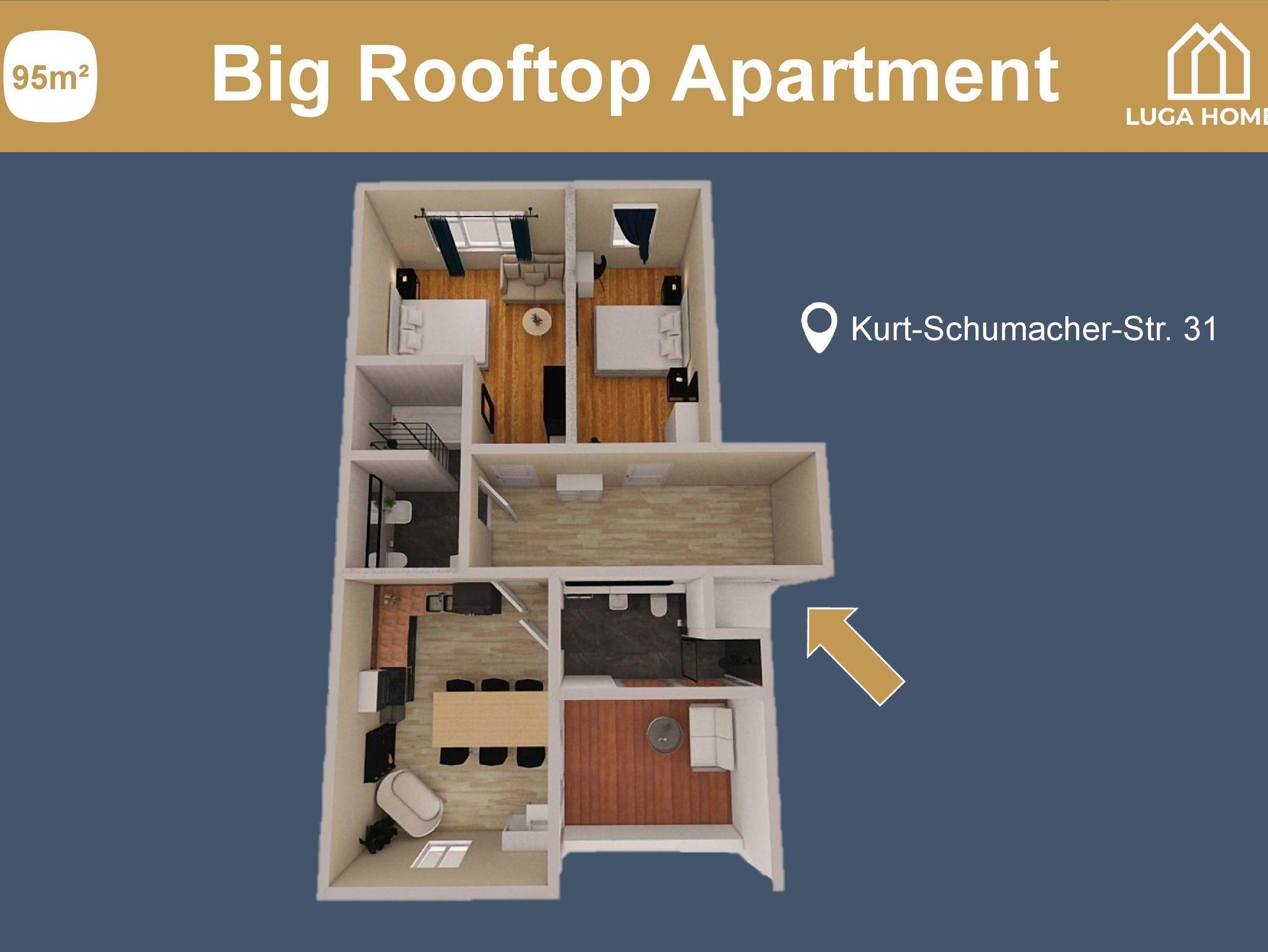 Luga Homes - Stadthaus, *Big Rooftop* 3-Zimmer-Apartment mit Wohnküche + Terrasse