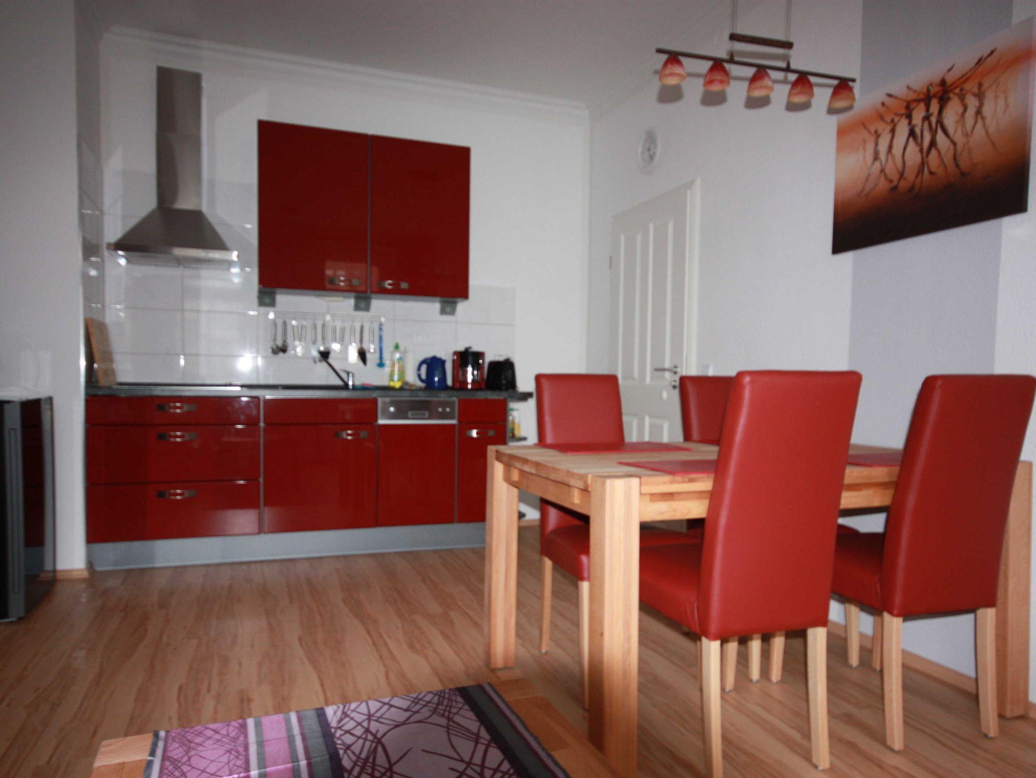 • Küchenzeile mit Spülmaschine, Kühlschrank mit Gefrierfach, Mikrowelle, Kaffeemaschine, 4-Platten-Cerankochfeld, Toaster, etc.