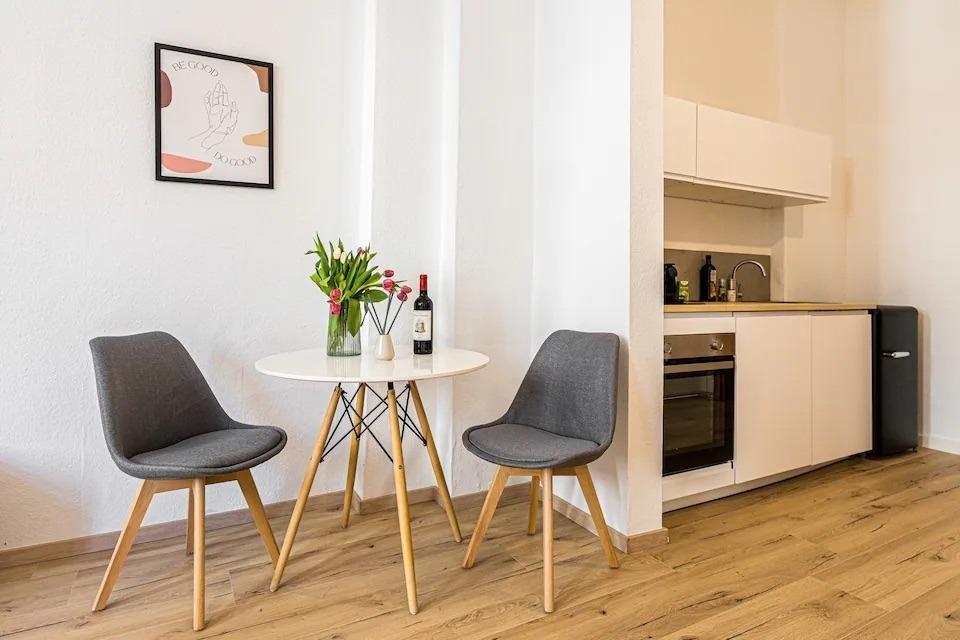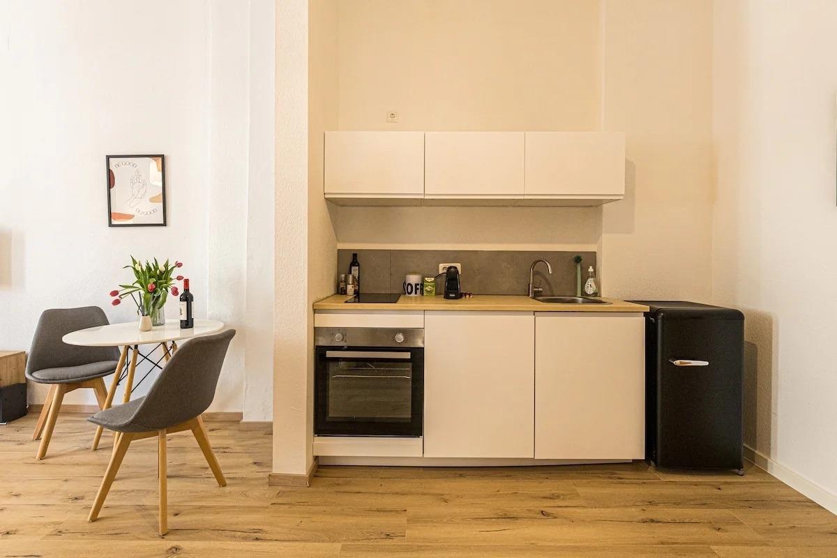 Die Wohnung ist geschmackvoll eingerichtet und verfügt über ein gemütliches Schlafzimmer mit einem bequemen Doppelbett sowie ein helle Küche mit einem Esstisch, welcher sich ebenso für das Homeoffice eignet. Die moderne Küche ist voll ausgestattet mit allem, was Sie benötigen, um Ihre Mahlzeiten zuzubereiten. Das Badezimmer ist neu und verfügt über eine Dusche.