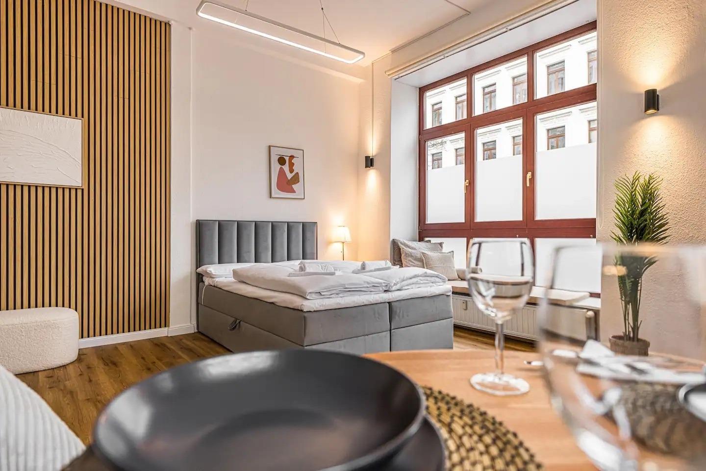 Unsere Wohnung bietet Ihnen alles, was Sie für einen angenehmen Aufenthalt benötigen, vor Allem eine Top Lage: Nach nur 25 Gehminuten (15 min mit den öffentlichen Verkehrsmitteln) erwartet Sie der Markt - das Herz und die historische Altstadt von Leipzig.