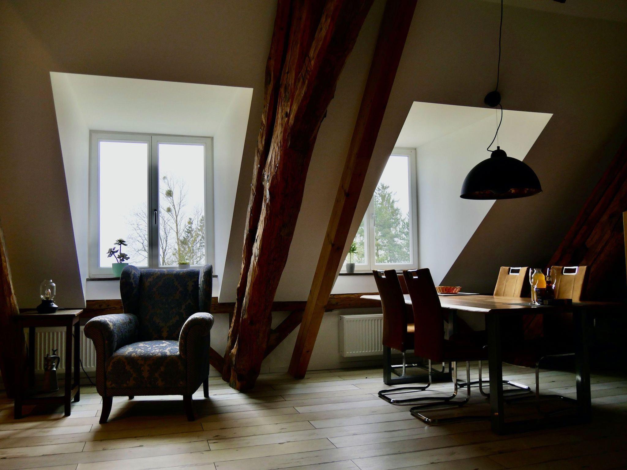Die Ferienwohnung Ulrichshusen begrüßt Sie in Lelkendorf in Mecklenburg-Vorpommern mit einer lichtdurchfluteten Loftwohnung über 2 Etagen. Insgesamt sind 8 Fenster verbaut und sie können aus der 2. und 3. Etage einen wunderschönen Ausblick in den Park und in die Landschaft genießen. Sie profitieren von kostenfreien Privatparkplätzen an der Unterkunft.