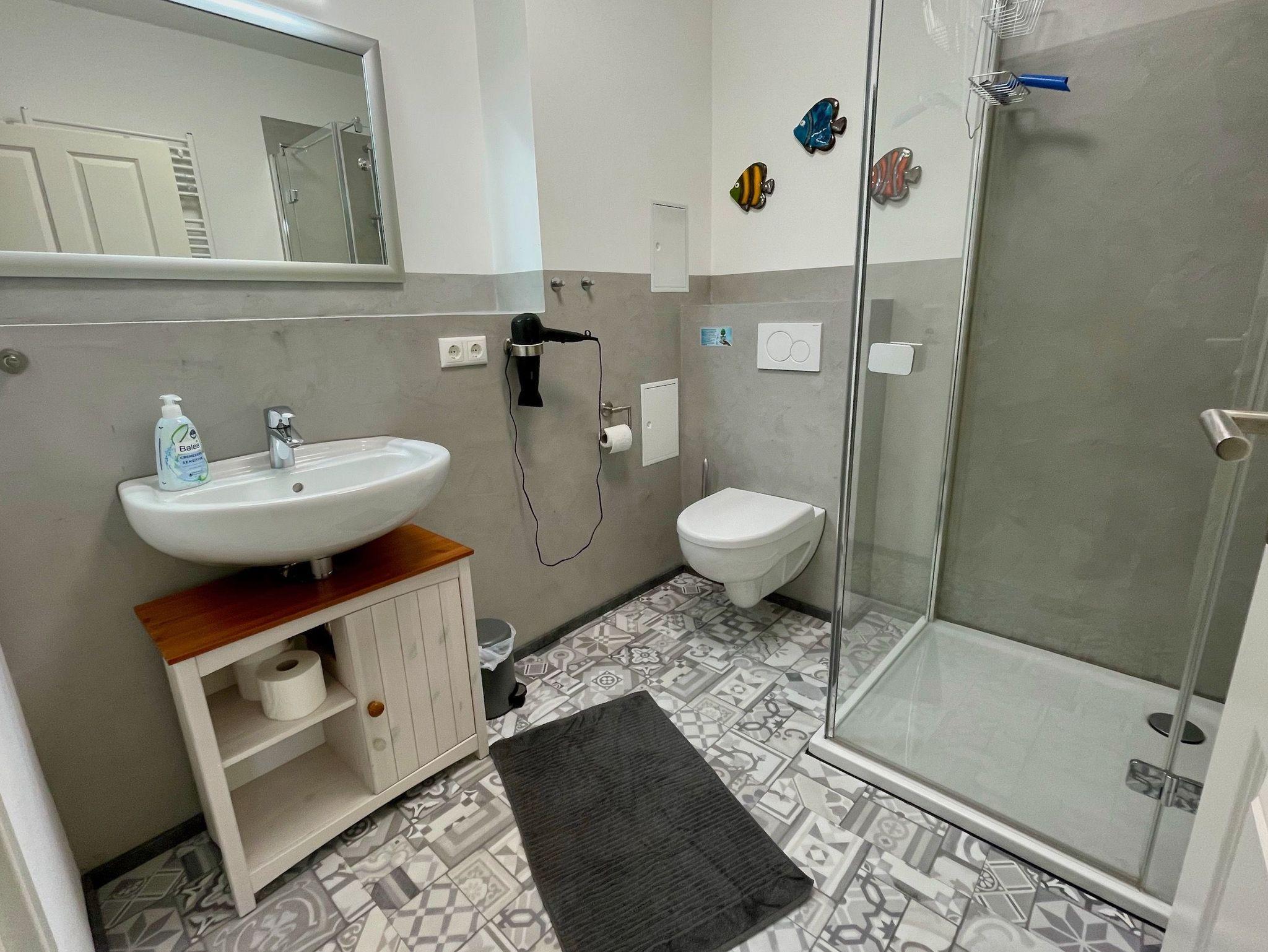 Ein Flachbild-Sat-TV ist vorhanden ebenso eine komplett ausgestattete Küche mit Geschirrspüler, Induktions- Herd/Backofen einer Mikrowelle und 2 verschiedenen Kaffeemaschinen (Nespresso und Filterkaffee). Waschmaschine und Trockner kann gegen Gebühr im Keller genutzt werden. Außerdem stehen Ihnen drei Fahrräder (2,50€/Fahrrad/Tag) zur Verfügung.