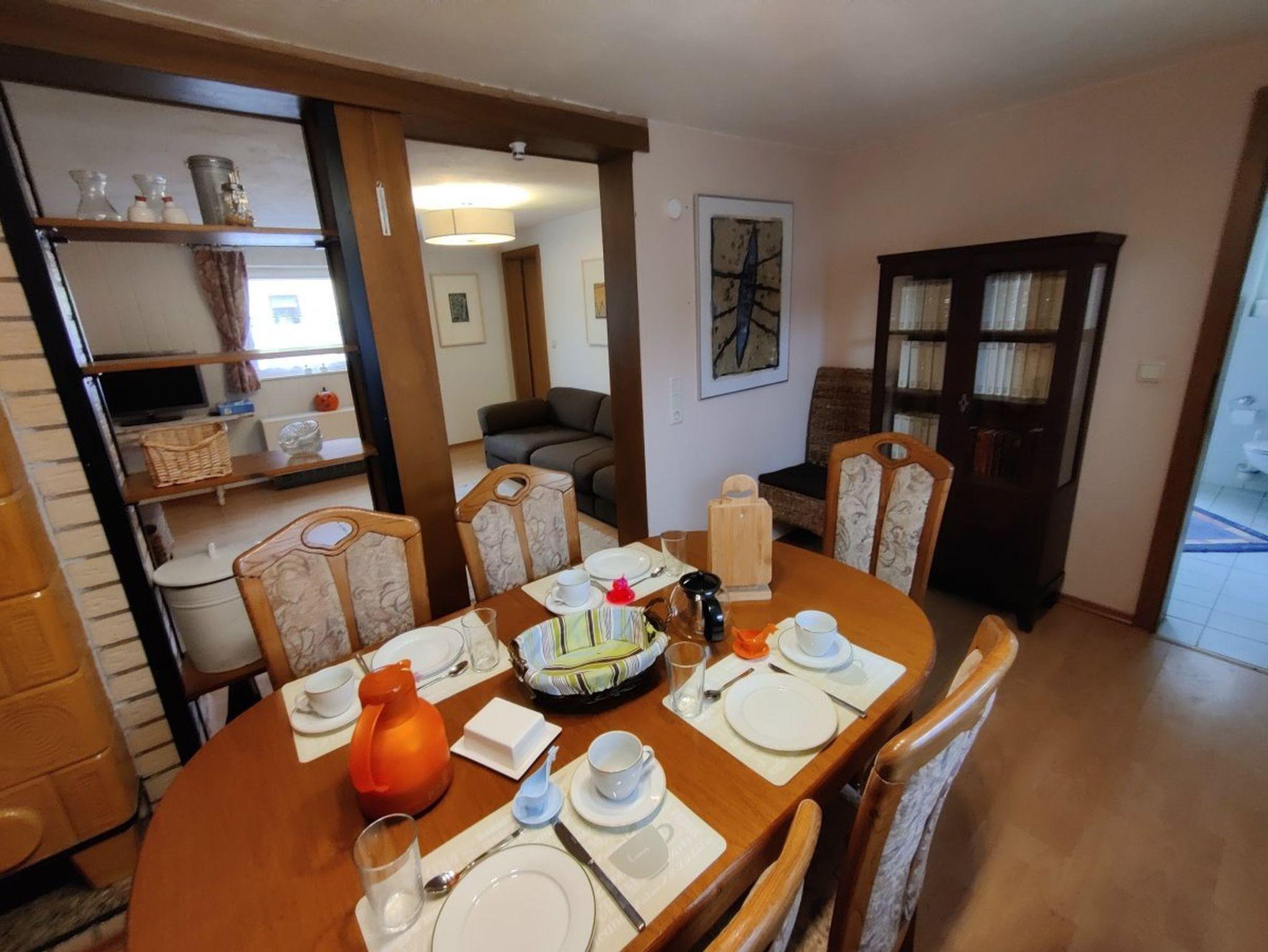 Für wohlige Wärme sorgt ein traditioneller Kachelofen, der die ganze Wohnung angenehm beheizt. Das nötige Holz stellen wir Ihnen selbstverständlich kostenlos zur Verfügung. Zusätzlich steht Ihnen schnelles Internet und stabiles WLAN zur Verfügung, damit Sie auch während Ihres Aufenthalts bestens vernetzt bleiben. In 500 m Entfernung können wir Ihnen eine Wallbox zum Laden Ihres E-Autos anbieten.