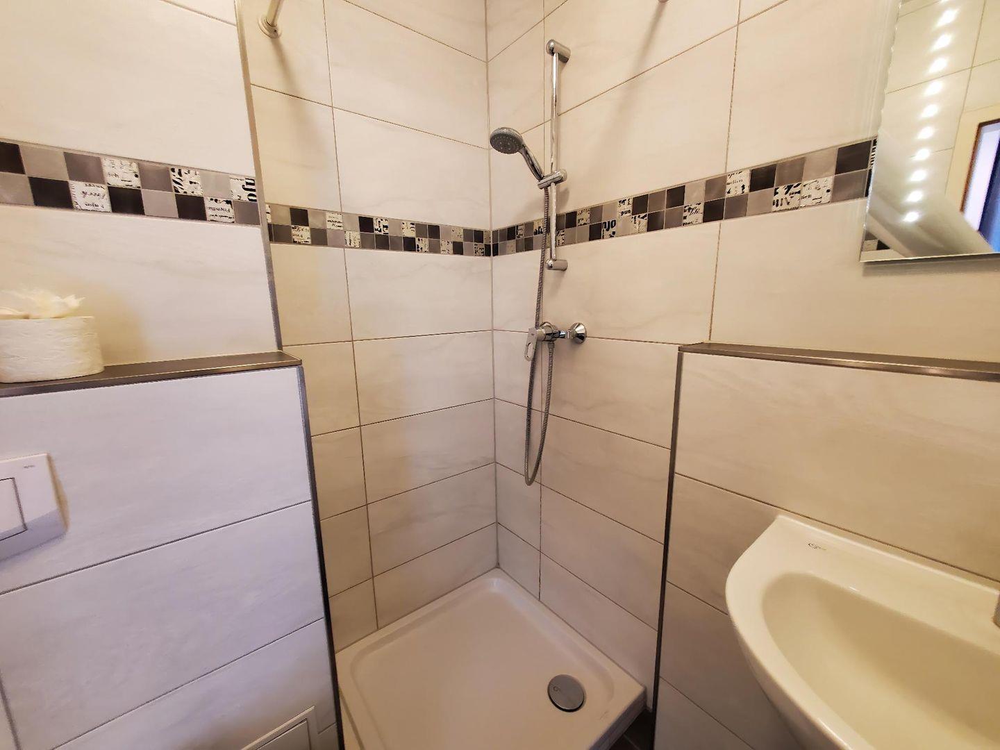 Modernes Duschbad, Elternschlafzimmer mit Doppelbett und Kleiderschrank