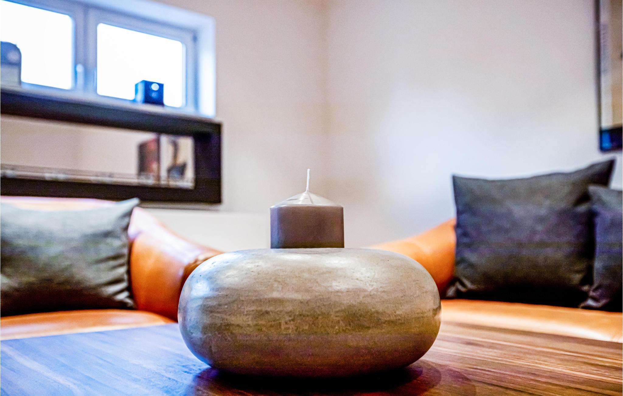Das Ferienhaus erstreckt sich über zwei Etagen und bietet mit drei Schlafzimmern, zwei Badezimmern, mehreren Wohnräumen, einer Essküche und einer Toilette viel Platz für eine Familie. Die Einrichtung ist modern und ansprechend. Das Herz des Hauses ist der schöne Wohnbereich mit Kamin, der zu entspannten Abenden auf dem Sofa einlädt.