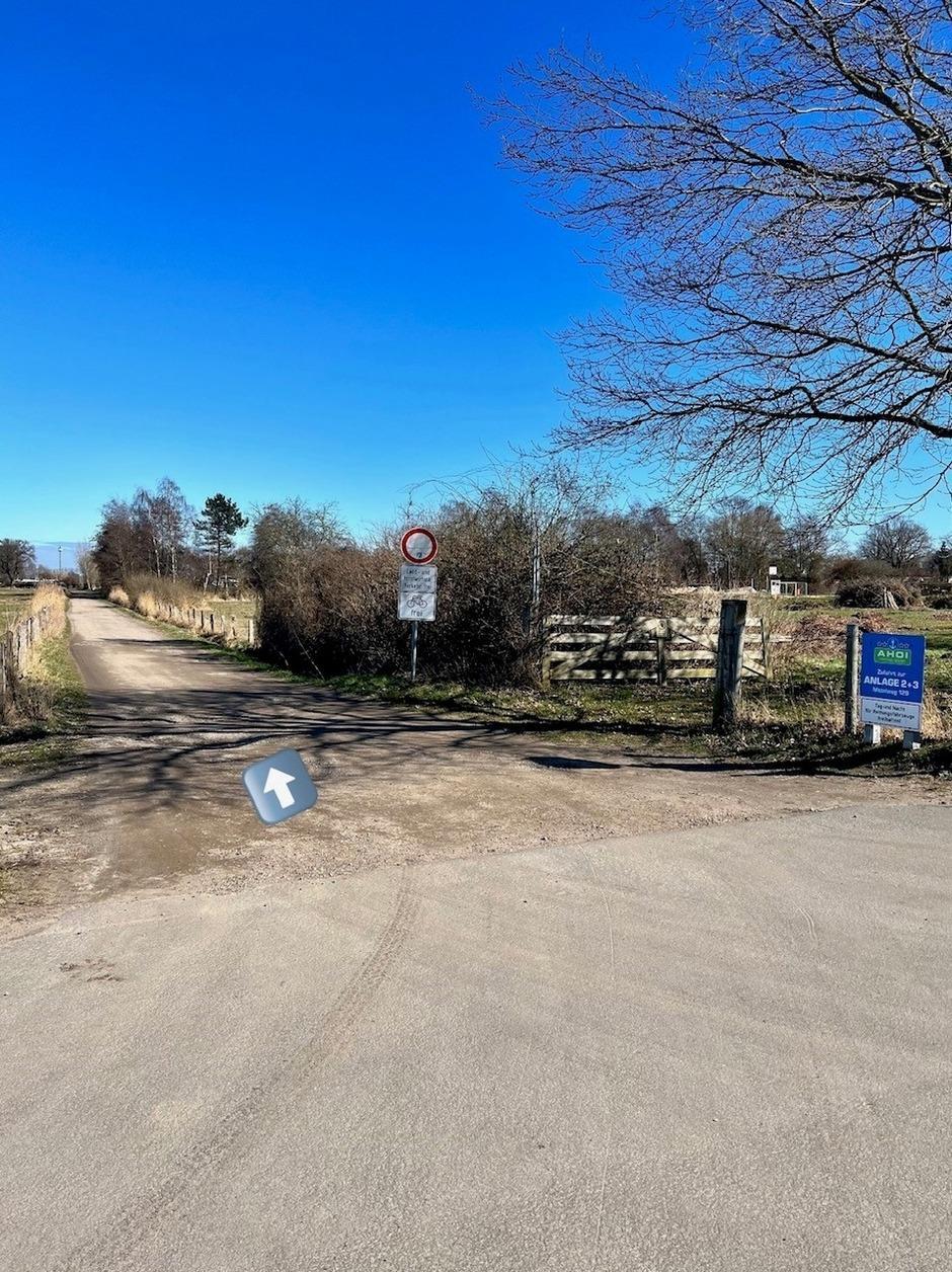 Anreisebeschreibung: Fahren Sie den Mittelweg entlang und passieren Sie die beiden Kurkliniken. An der ersten Kreuzung biegen Sie links ab und fahren ein Stück geradeaus. Nehmen Sie die erste Feldwegeinfahrt rechts (Anlieger dürfen hier auffahren). Folgen Sie dem Sandweg bis zur ersten Abfahrt rechts, wo sich eine Schranke befindet. Bitte wählen Sie über Ihr Handy die Handynummer für den Zugang zur Schranke.