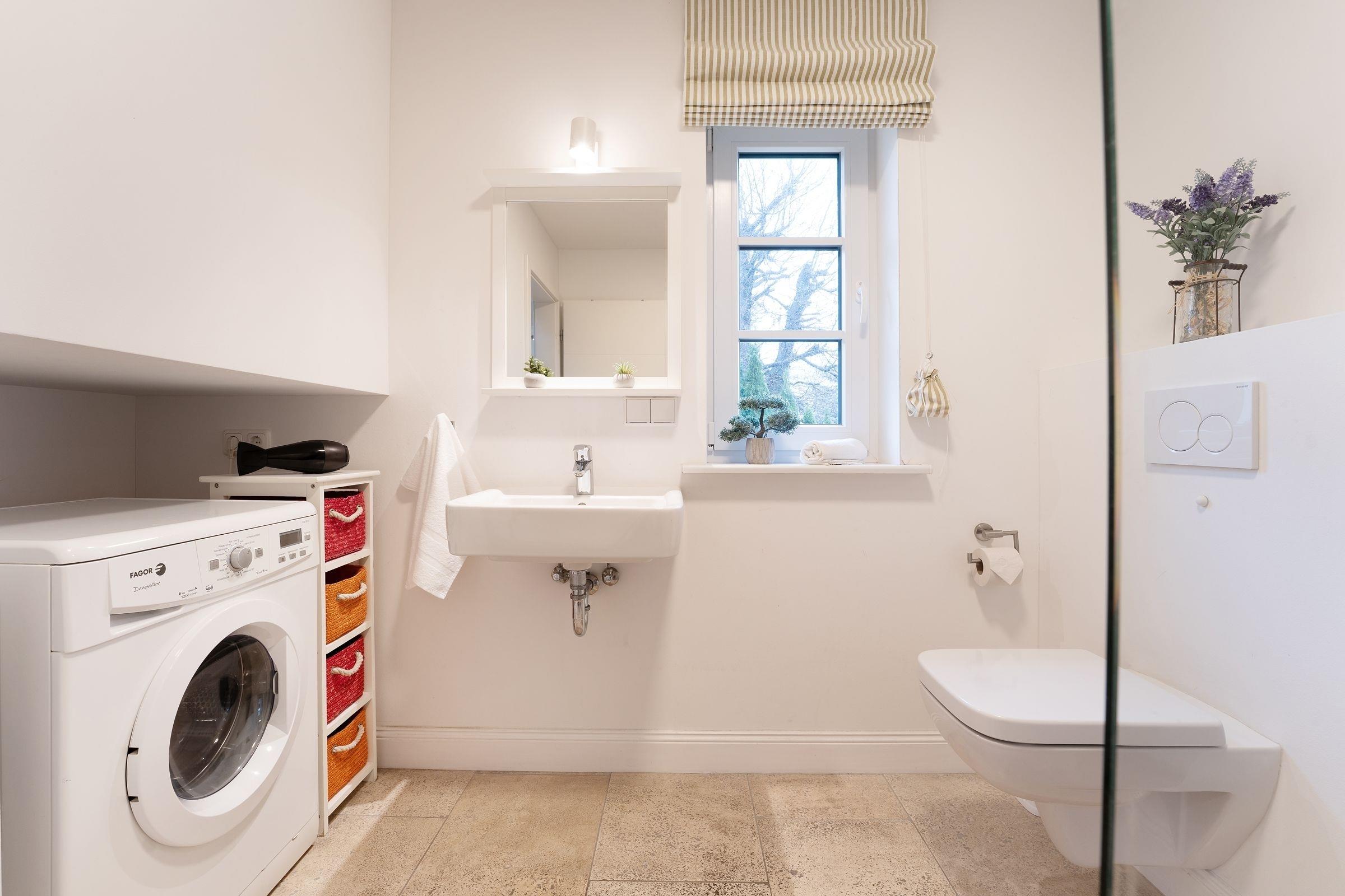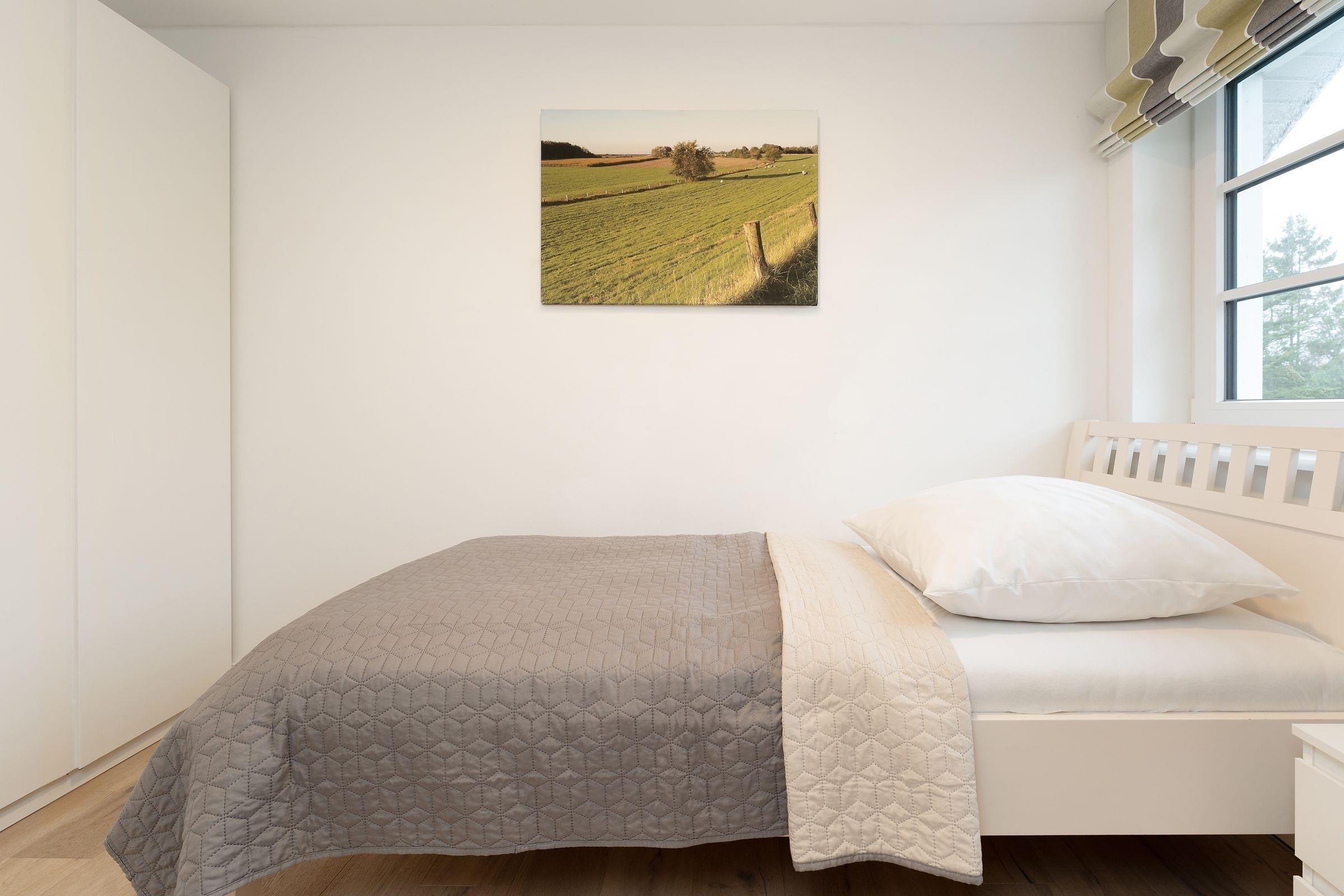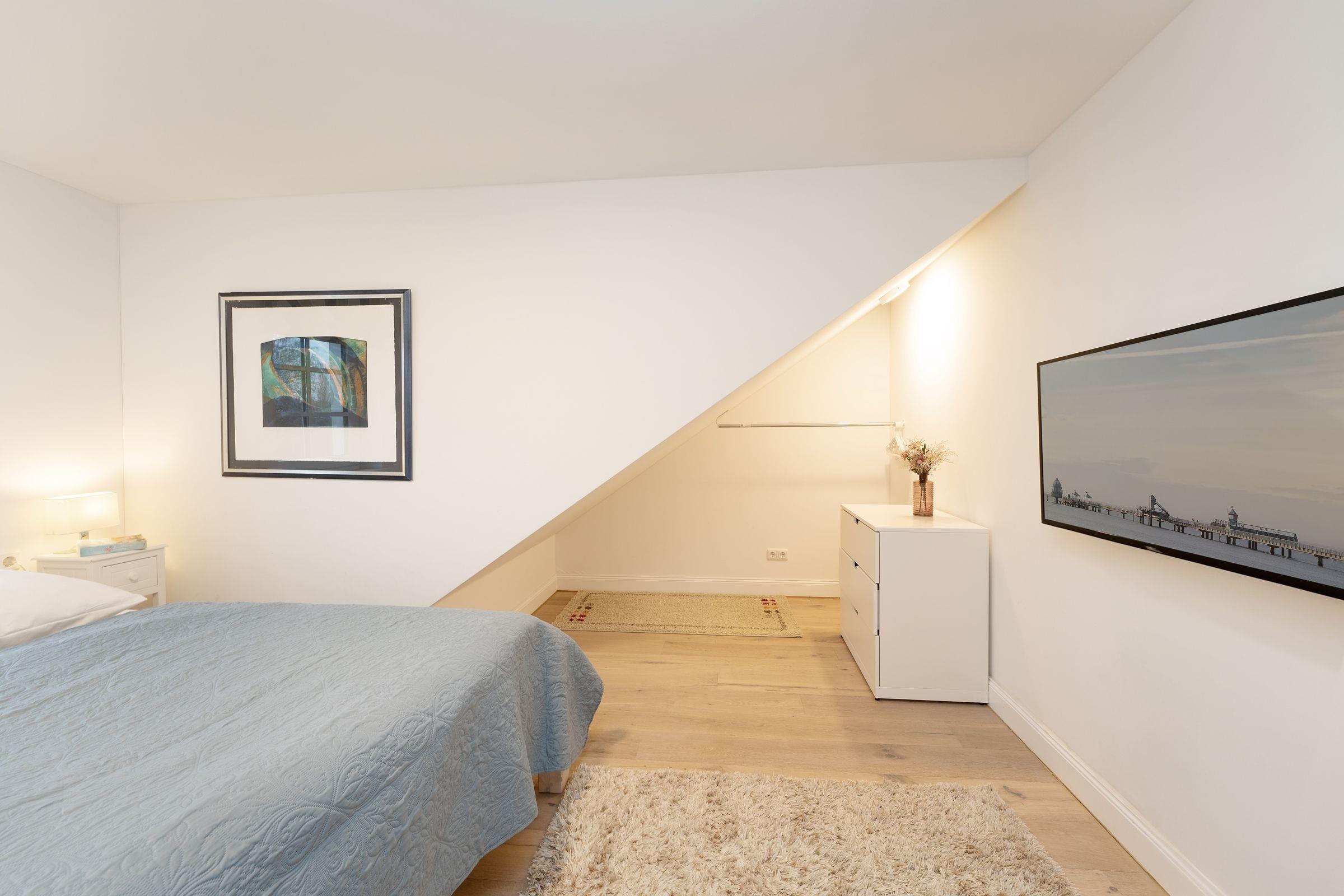 Der offene Wohn- und Kochbereich, umrahmt von 2 Terrassen, begeistert mit geschmackvollem Design und gehobener Ausstattung. Bequeme Sitzgelegenheiten im Wohnbereich, der Flat-TV, Stereoanlage und ein Esstisch bieten viele Möglichkeiten, die Urlaubstage zu gestalten. Die schicke, offene Küche ist hochwertig ausgestattet. Absolutes Highlight ist die wunderschöne möblierte Holzterrasse mit Blick in den umzäunten Garten, auf der Sie die gesunde Ostseeluft genießen können. Das moderne Bad ist mit einer bodentiefen Dusche und einer Waschmaschine bestückt. Erholsame Nächte beschert Ihnen das Doppelbett (2x 90x200 cm) im Hauptschlafzimmer. Im Kleiderschrank ist Platz für Ihre Urlaubsgarderobe und ein 2. Flat-TV sorgt für Unterhaltung. 2 weitere Gäste können es sich im nebenliegenden Schlafzimmer in zwei Einzelbetten (je 90x200 cm) gemütlich machen. Auf dieser Etage gibt es ein zusätzliches Gäste-WC.