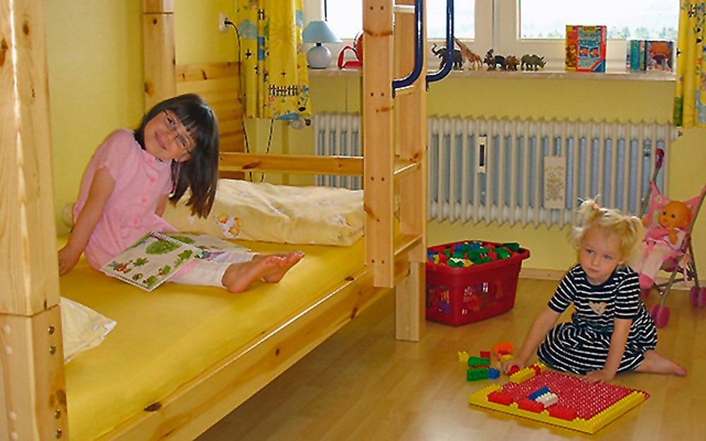 Mit Etagenbett in normaler Größe (Matratzen 90x180 cm) und abklappbarem Wickeltisch