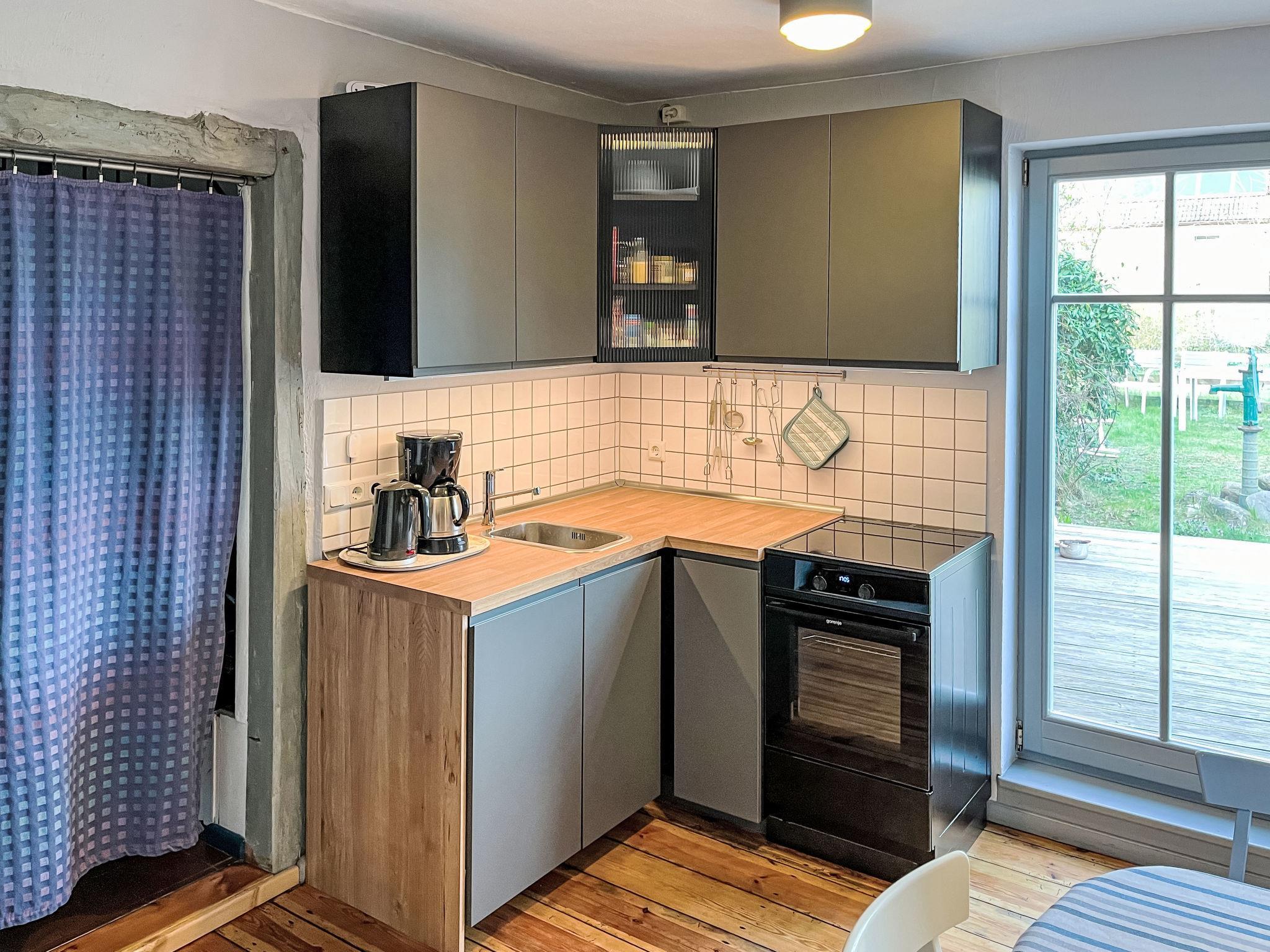 Gemütliche Doppelhaushälfte 'Kapitänshaus Leo' nahe Leopoldshagen mit Sauna, Kamin und eingezäuntem Garten.