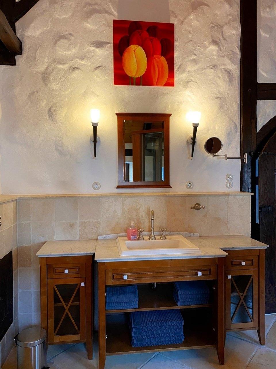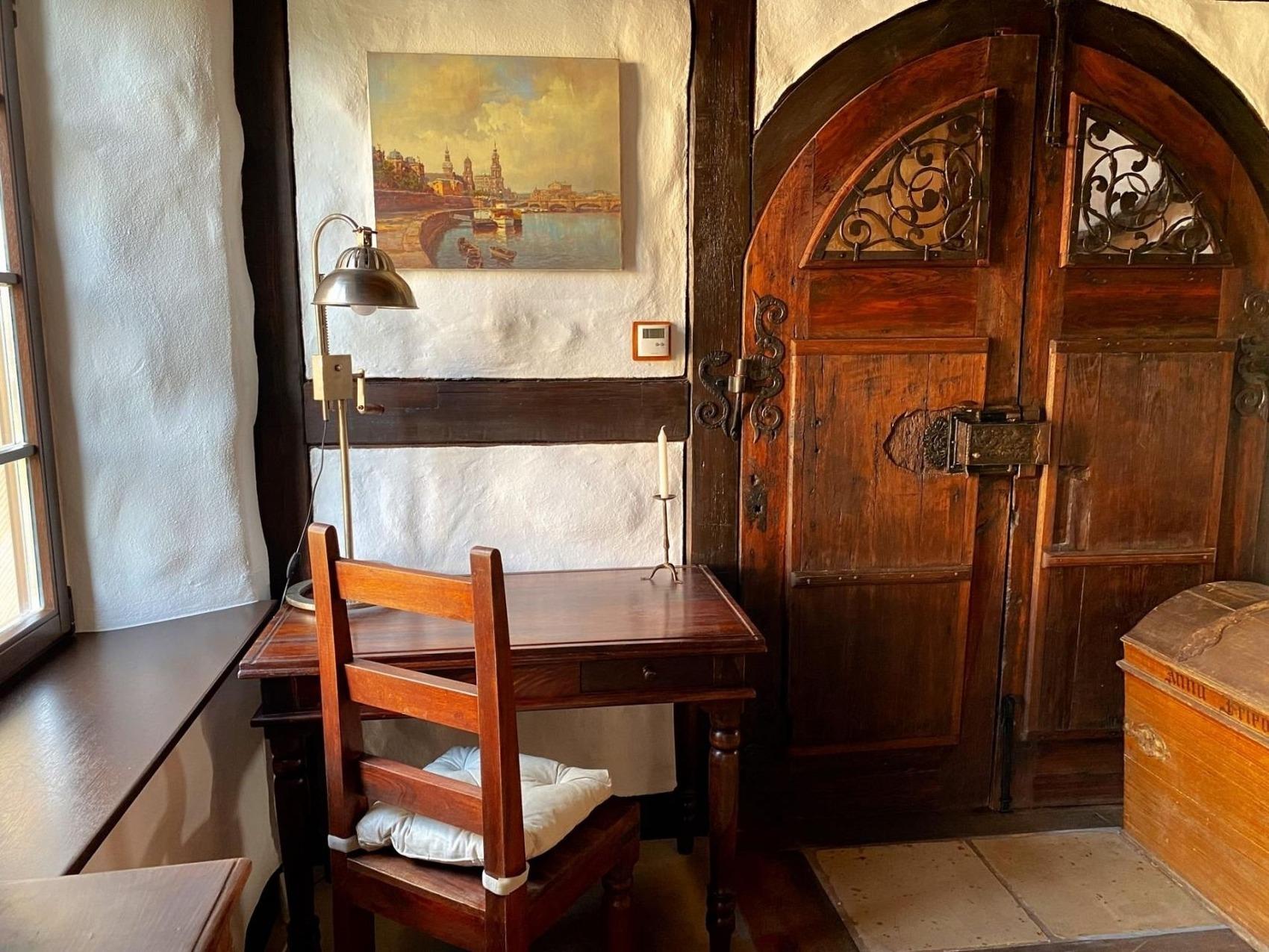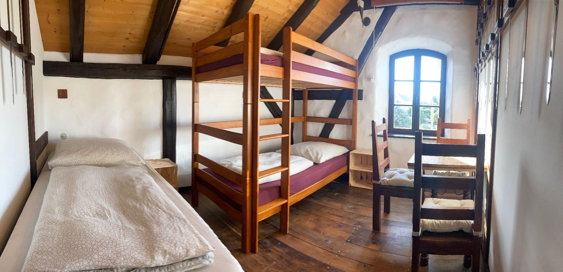 Ferienhaus WAFFENKAMMER im Rittergut Leppersdorf bei Radeberg.Unsere letzten Wachkommandanten hatten einen Faible für Waffen aller Art. Auch wenn ein Ritter natürlich nicht ohne sein Schwert aus dem Hause geht, gilt sein Interesse manchmal auch moderneren, unritterlichen Waffen wie Gewehren, Kanonen, Armbrüsten und Pistolen. Gut aufbewahrt in der Waffenkammer ist das ein imposanter Anblick. Vor allem, wenn wertvolle Stücke mit historischer Bedeutung darunter sind. Zu diesen Schätzen läßt man ungern Fremde vordringen. Deshalb liegt das Ferienhaus Waffenkammer bei uns auch direkt neben der Wachstube, verbunden durch eine Geheimtüre die nur der Kommandant und der Burgherr kennt. Da unsere Wachmannschaft gerade unterwegs ist und uns erlaubt hat, in der Wachstube ausgewählte Gäste übernachten zu lassen, habe ich dem Kommandanten auch noch die Genehmigung zur Vermietung der Waffenkammer abgerungen.Geniesen sie das einmalige Erlebnis die Nächte wohlbehütet in unserer kinderfreundlichen Waffenkammer zu verbringen.Als Monteurswohnung gut geeignet.