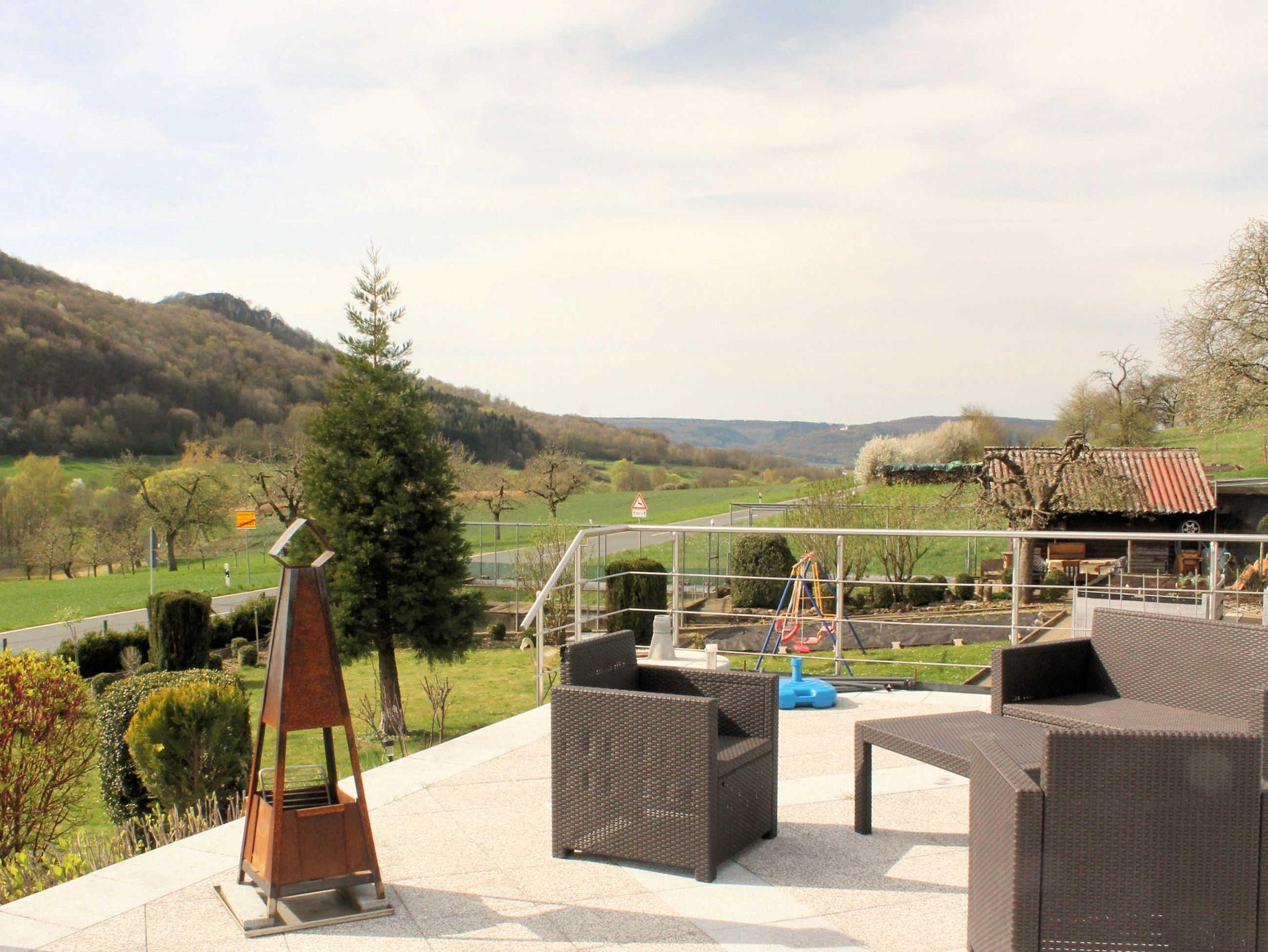 Die Ferienwohnung befindet sich im Dachgeschoss eines auf Anhöhe liegenden Zweifamilienhauses. Parken direkt auf dem Grundstück, mit eigenen Gelände und Gartenanlage, dieses ist abschließbar. Der große Gartenbereich wird vielfältig genutzt, es kann gegrillt werden und es gibt verschiedene Sitzmöglichkeiten auch unter Dach.