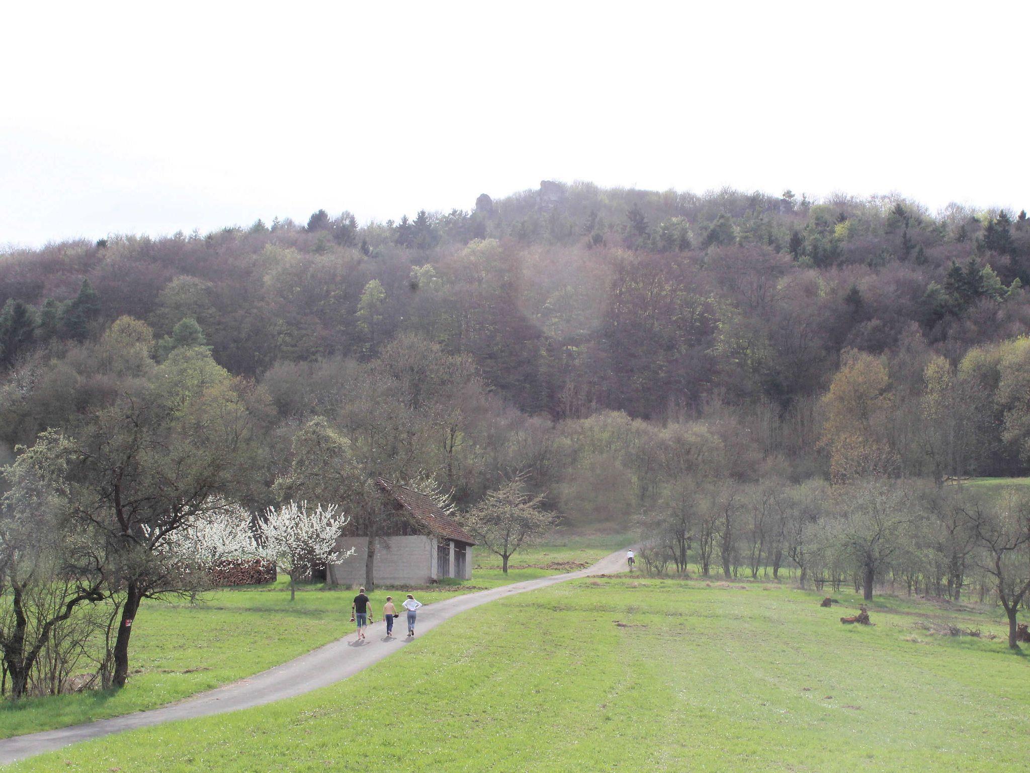 Die Ferienwohnung Walberlablick befindet sich am Rande eines verschlafenen Dorfes mit urigen Gasthäusern. Und mit einem wunderschönen Blick auf die Ehrenbürg, auch Walberla oder Berg der Franken genannt.