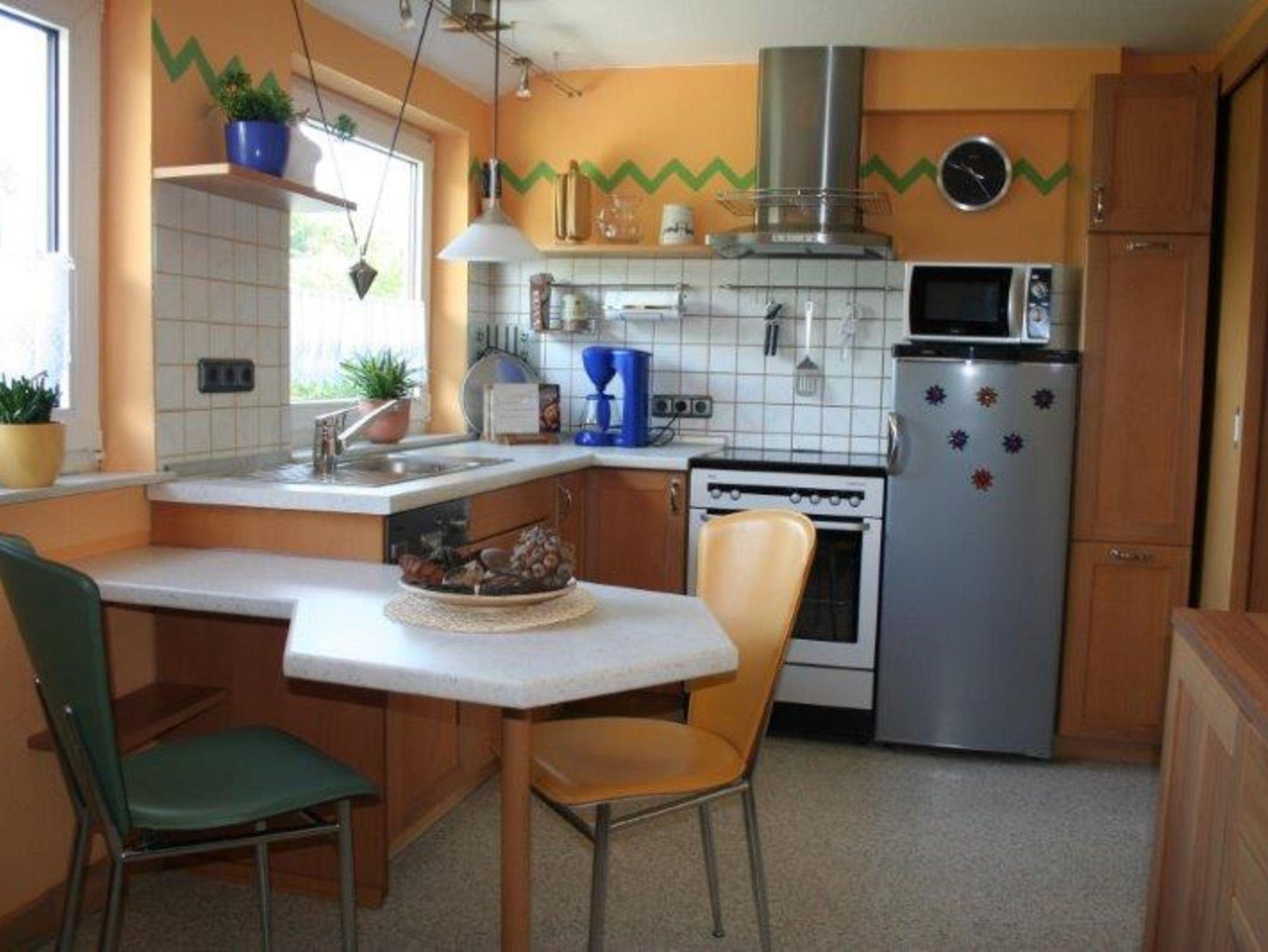 Von einem Herd mit Ceranfeld und Backofen, einer Dunstabzugshaube, einer Geschirrspülmaschine bis hin über eine Kühl-/Gefrierkombination, einer Mikrowelle und Wasserkocher sowie Kaffemaschine und Toaster ist alles vorhanden.