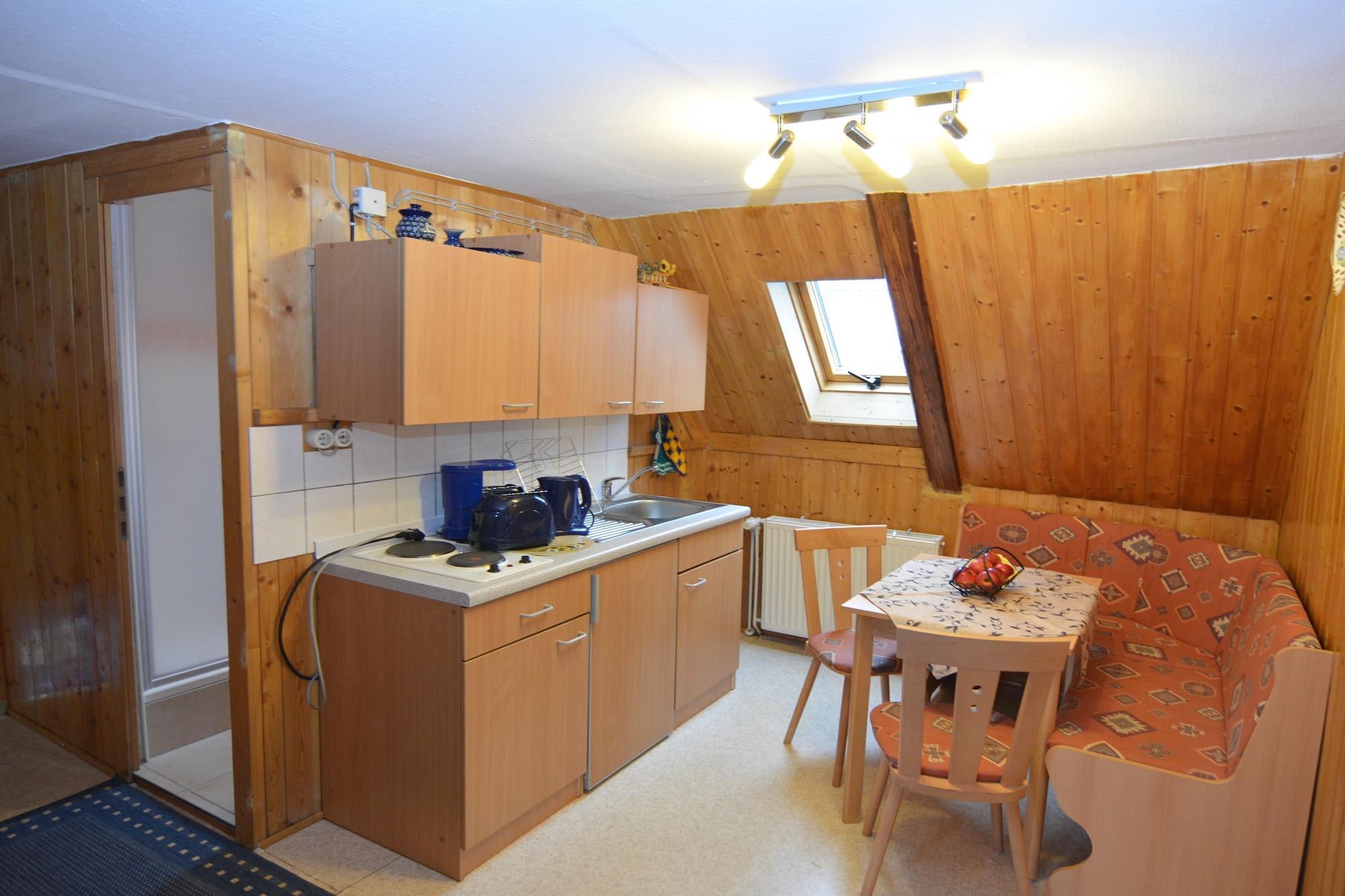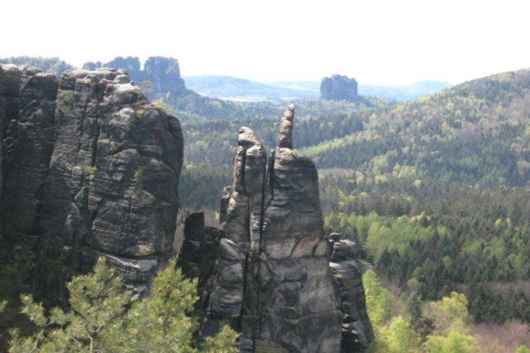 Diese großzügige Wohnung im zweiten Stock im ruhigen Dorf Lichtenhain eignet sich ideal für Familien oder Gruppen mit bis zu acht Gästen. Mit vier Schlafzimmern, davon drei mit Doppelbetten (190 x 200 cm), bietet sie viel Platz für einen komfortablen Aufenthalt. Das Haus verfügt über zwei Küchen – beide ausgestattet mit 2-Platten-Elektroherden, Mikrowellen, Kühlschränken und Filterkaffeemaschinen – ideal für die Zubereitung von Mahlzeiten für mehrere Personen. Das Wohnzimmer und das Wohn-/Esszimmer sind jeweils mit Sat-TV ausgestattet und bieten Platz zum Entspannen und Erholen. Das Badezimmer verfügt über Dusche, Waschbecken und WC, und die Heizung sorgt für Komfort zu jeder Jahreszeit. Gästen steht ein 1000 m² großer Gemeinschaftsgarten mit Holzkohlegrill, Teich, Spielgeräten und Tischtennisplatte zur Verfügung – ideal für Kinder und Erwachsene. Ein Kinderbett und ein Hochstuhl sind vorhanden, und Parkplätze stehen vor Ort zur Verfügung. Nur 500 m von Geschäften, Restaurants und öffentlichen Verkehrsmitteln entfernt und in der Nähe von Wäldern, Reitmöglichkeiten und Skipisten gelegen, ist dieses Haus ein fantastischer Ausgangspunkt, um die Sächsische Schweiz das ganze Jahr über zu erkunden.