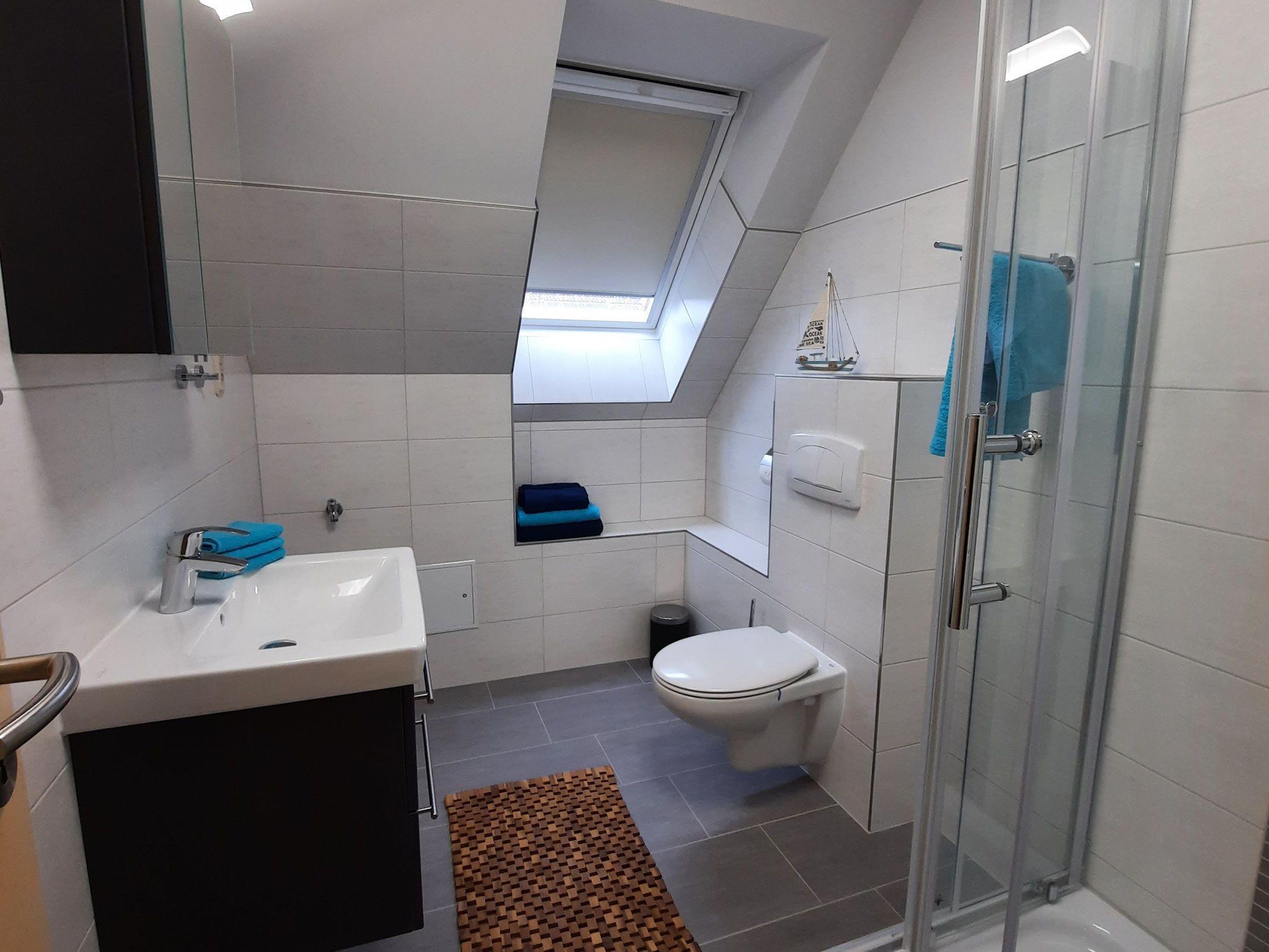 Die Ferienwohnung ist gemütlich, komfortabel und den heutigen Anforderungen entsprechend eingerichtet. Die 54 m² große Wohnung befindet sich im Obergeschoss eines Einfamilienhauses. Ausgestattet ist sie für 2 bis 4 Personen. Die Ferienwohnung verfügt über einen Schlafraum mit großzügigem Doppelbett, einem Wohnraum mit halb offener Küche und Essecke sowie ein Bad mit Du/WC. Auf Ihre Kinder wartet ein hauseigener Spielplatz mit Sandkiste, Schaukel, Tutsche und Klettergerüst. Ihren Pkw können Sie auf den bereit gestellten Parkplätzen direkt bei den Ferienwohnungen parken. Kinderreisebett und Hochstuhl auf Anfrage.