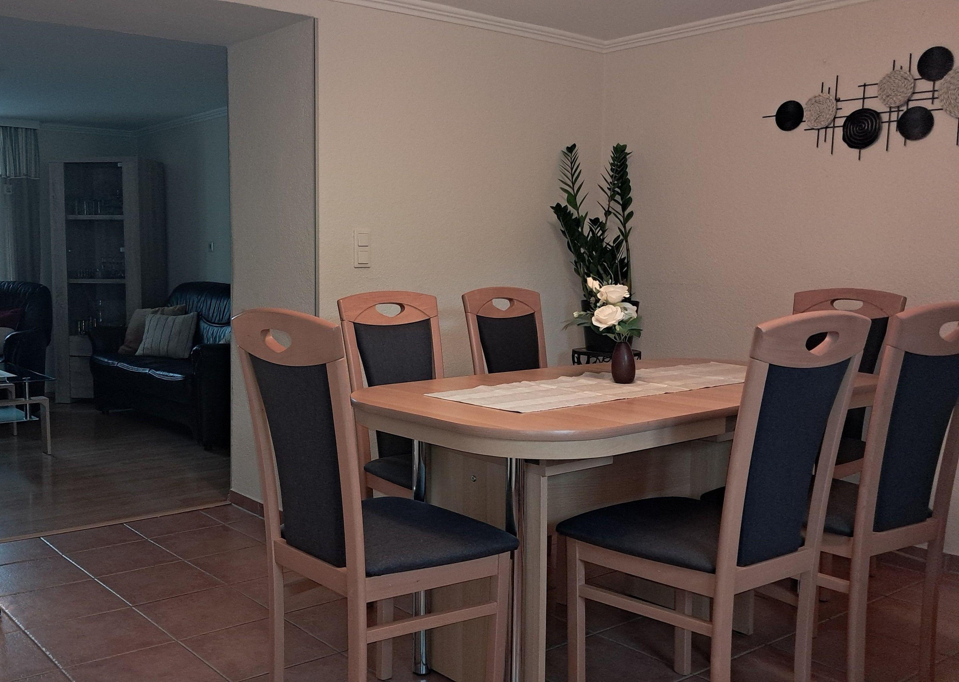 Wohn- u. Esszimmer mit Smart-TV. Kein Teppichboden. Gratis-WLAN