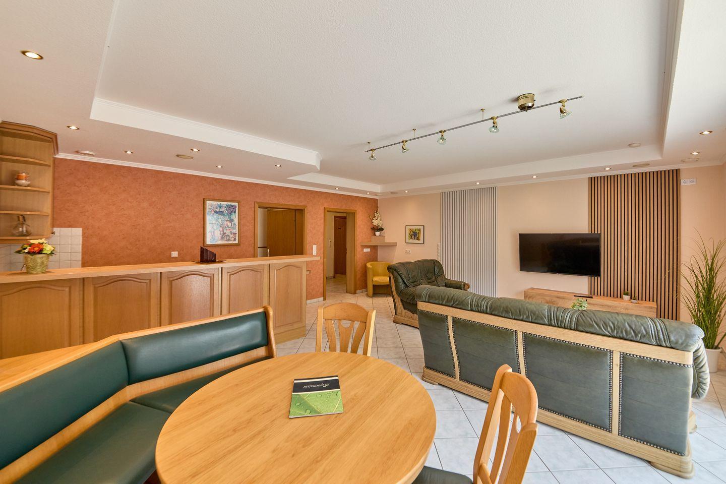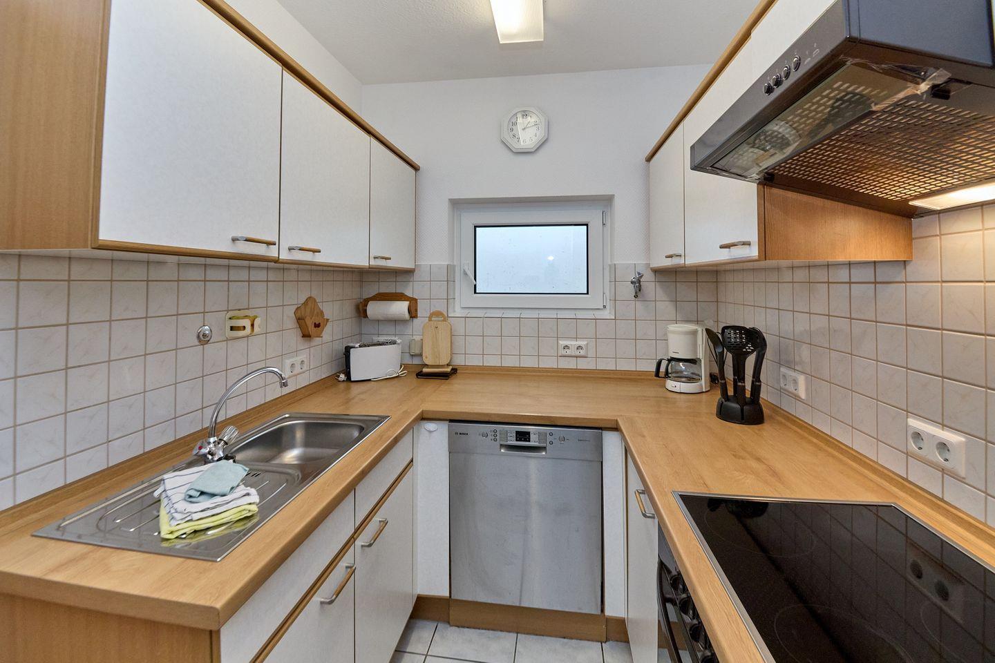 Eine voll ausgestattete Küche, die abgeriegelt ist, ermöglicht es Ihnen, sich selbst kulinarisch zu betätigen. Hier finden Sie alles, was Sie benötigen: von einem Cerankochfeld über einen Backofen, Kühlschrank bis hin zu Geschirr und Küchenutensilien. Zusätzlich sind praktische Geräte wie eine Spülmaschine, Kaffeemaschine sowie Wasserkocher vorhanden, damit es Ihnen an nichts fehlt. Im Essbereich können Sie Ihre Mahlzeiten in geselliger Runde genießen.