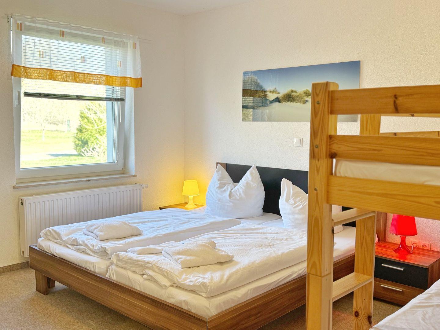 Schlafzimmer 1: Doppelbett 180x200 cm + Etagenbett 90x200 cm