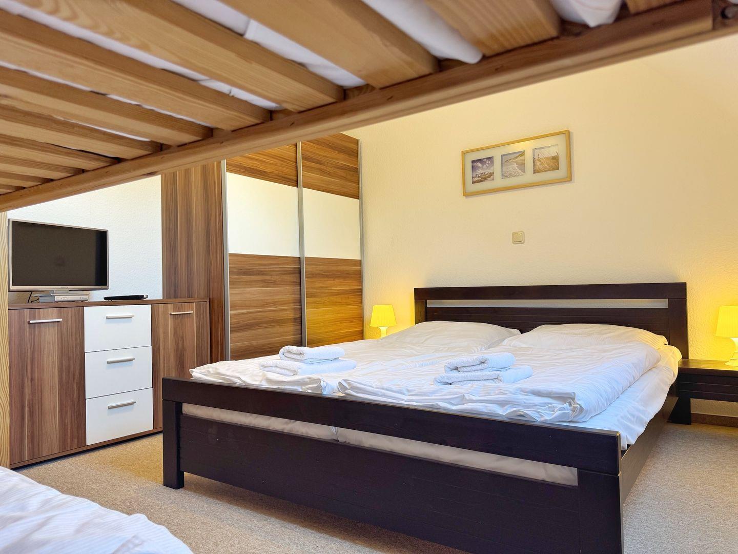 Im Obergeschoß befinden sich zwei weitere, separate Ferienwohnungen mit einer Wohnfläche von 50 bzw. 75 m². Die größere Wohnung ist für 4-6 Personen ausgestattet, die kleinere Wohnung bietet Platz für 2-3 Personen.