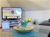 Wohnzimmer mit integrierter Küchenzeile, Esstisch, Couchgarnitur, Flachbild-TV, Radio, WLAN