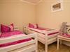 Über einen separaten Eingang gelangen Sie in die untere Ebene der modern eingerichteten Ferienwohnung. Hier finden Sie das Elternschlafzimmer mit Doppelbett, das Kinderschlafzimmer mit 2 Einzelbetten (bzw. mit Doppelstockbetten in den Wohnungen Fischmöwe und Silbermöwe) sowie das Badezimmer mit Dusche und WC.