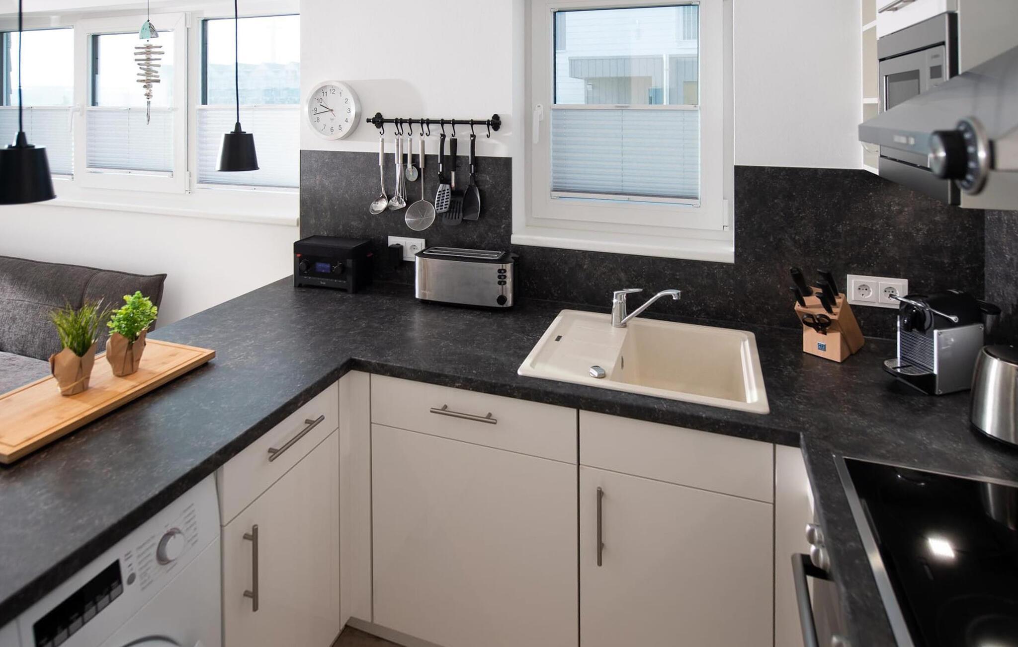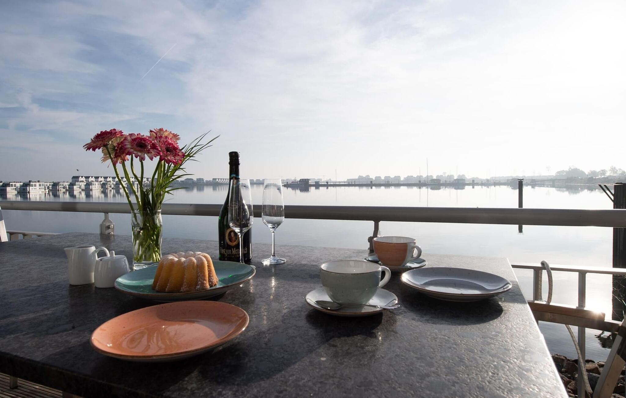 Unser Lieblingsplatz: In der super ausgestatteten Küche köstliche Urlaubs-Snacks vorbereiten und hierbei das Hafenkino genießenserviert wird natürlich auf der Terrasse direkt am Wasser… Urlaub!