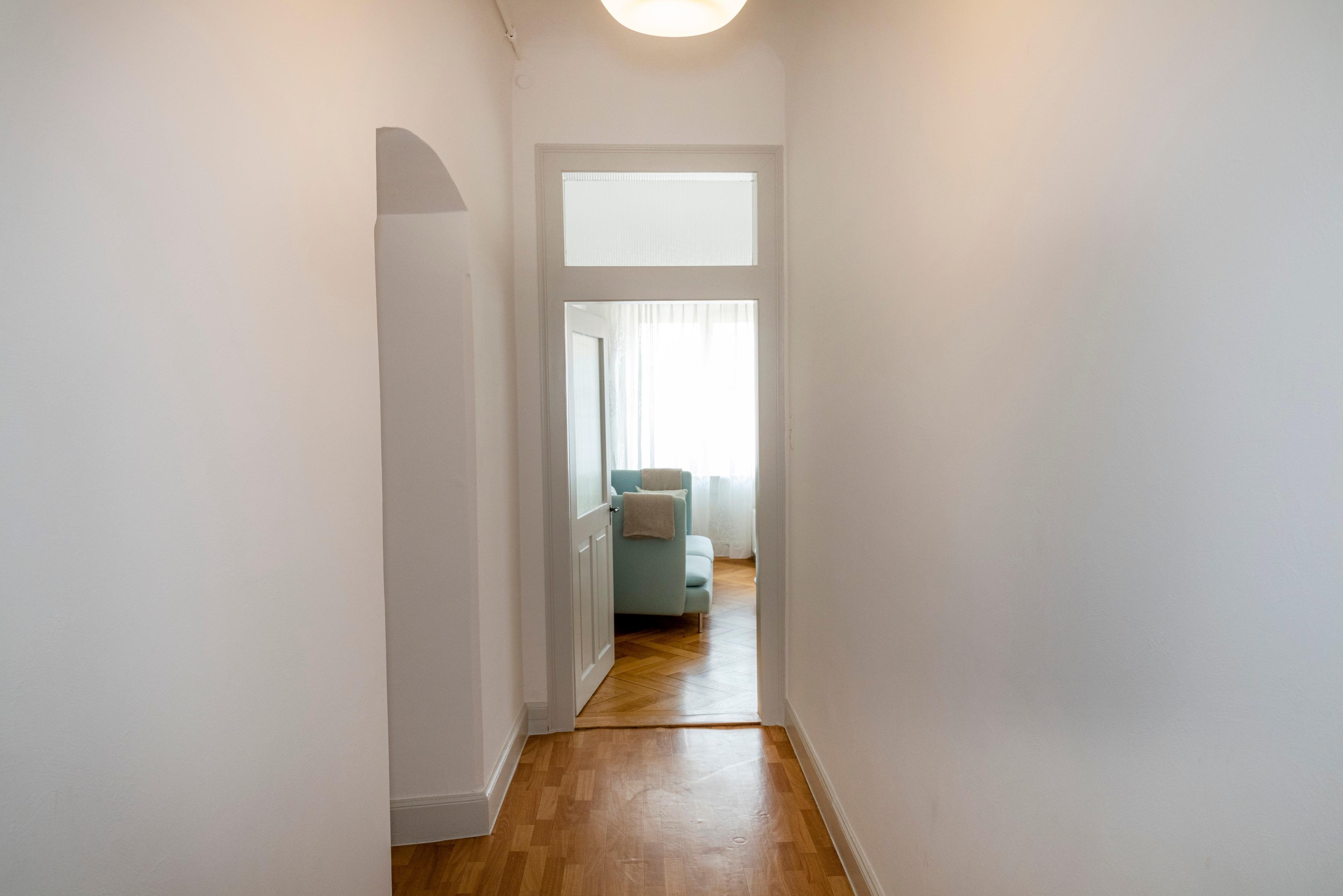 Im Flur wurde eine separate Ankleide eingerichtet, was besonders von Allergikern geschätzt wird. Auch Gepäckstücke finden dort ihren Platz.