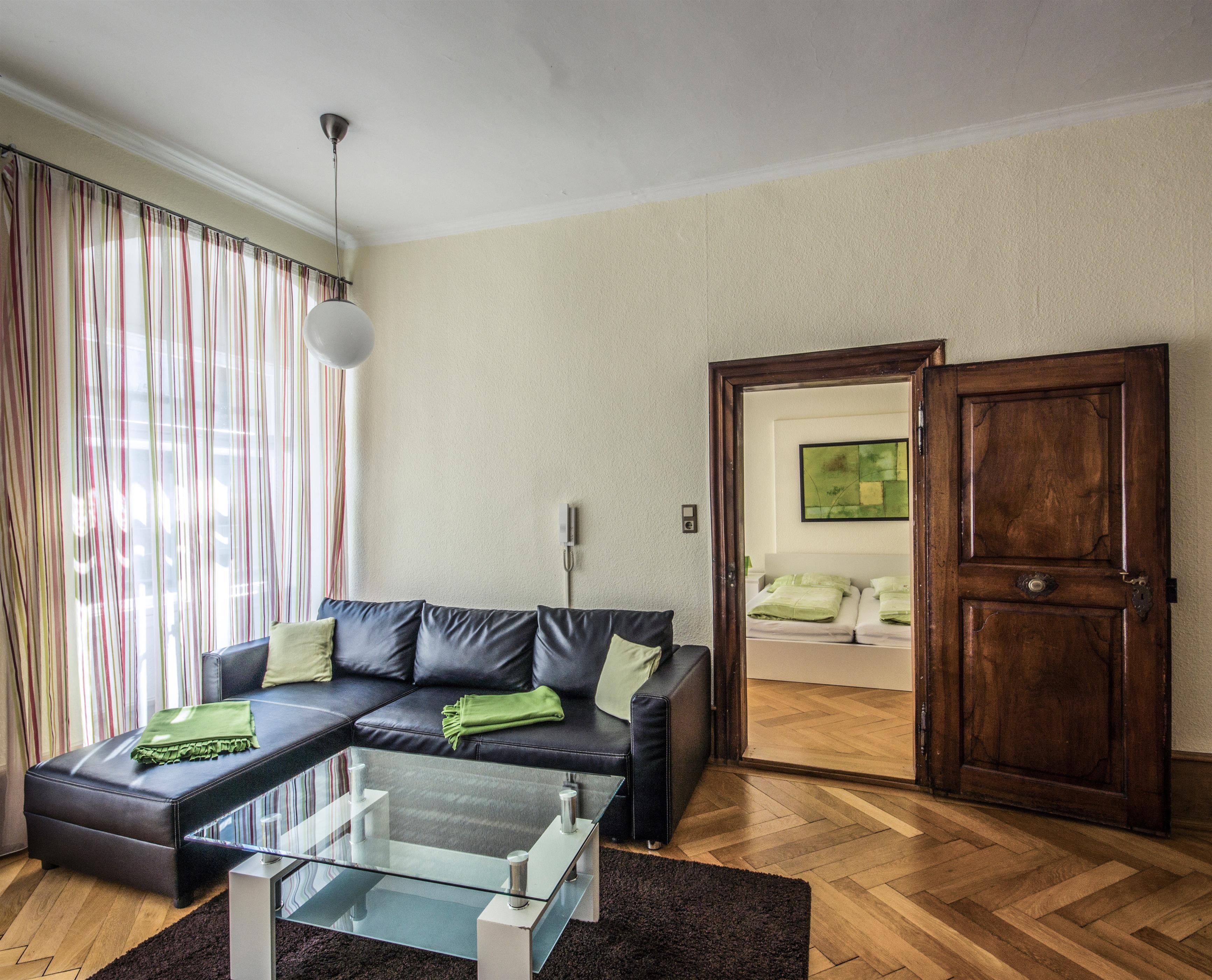 Im Wohnzimmer wartet eine bequeme Eck-Couch auf Sie, die für eine dritte Person zum Schlafen genutzt werden kann - und selbstverständlich zum Lesen, Entspannen, Musikhören oder Fernsehen.